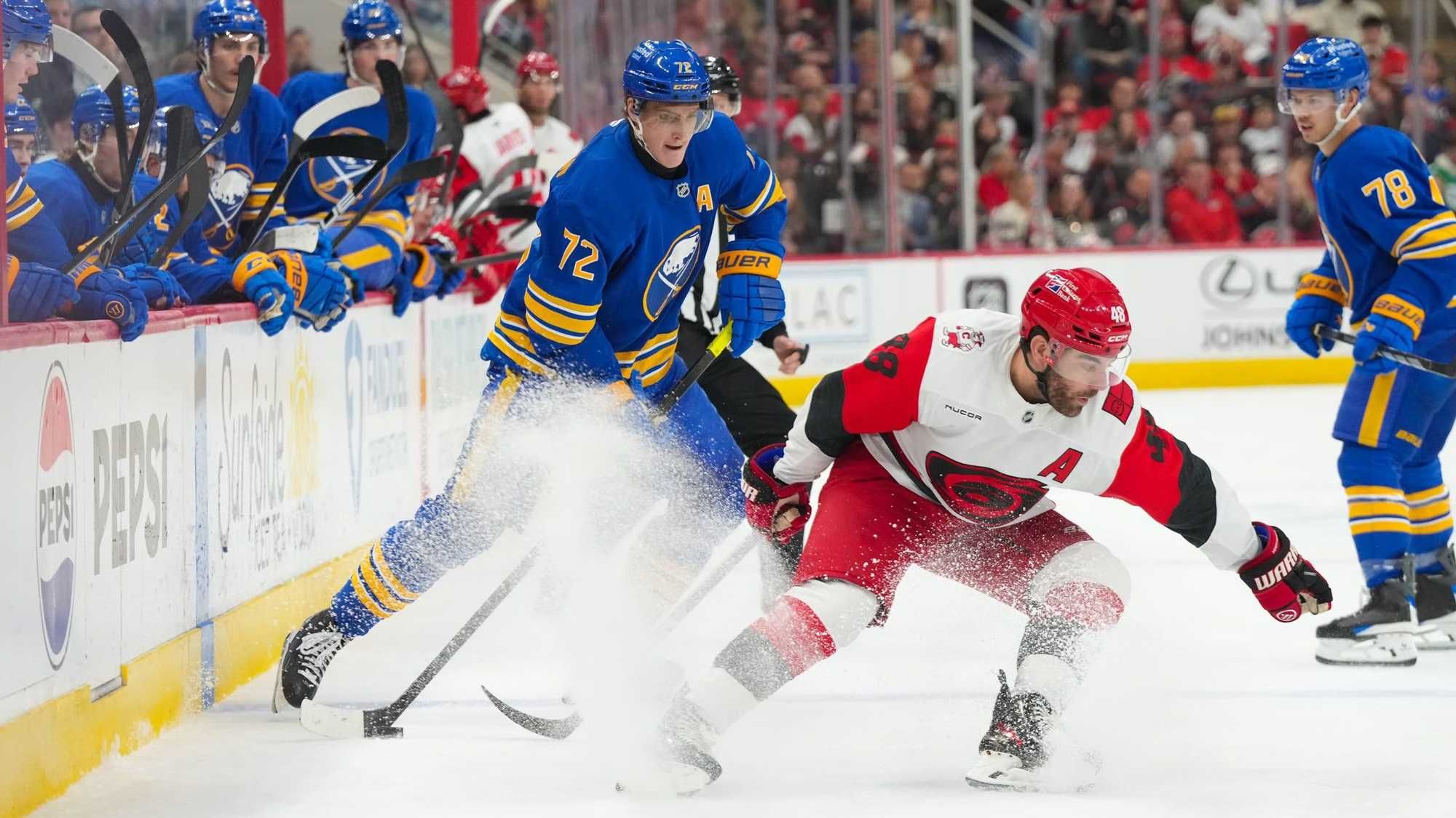 After a decent first period in Carolina against the Hurricanes on Saturday, the Sabres got outplayed in the middle frame. Some of the reasons were overstaying shifts - which cost them a goal - and being outworked, causing them not to be able to get in on the forecheck.
