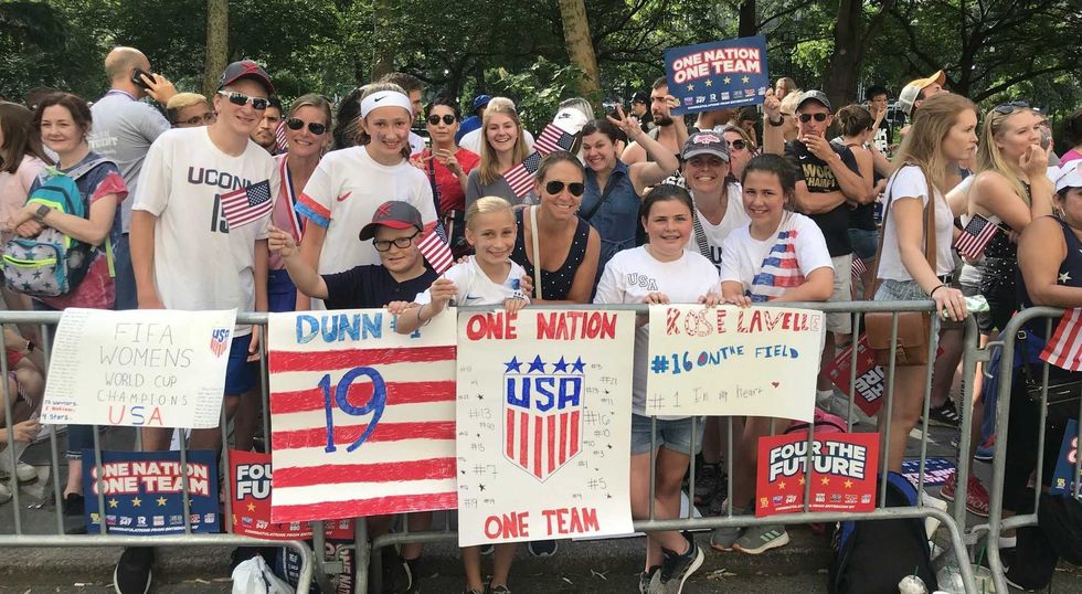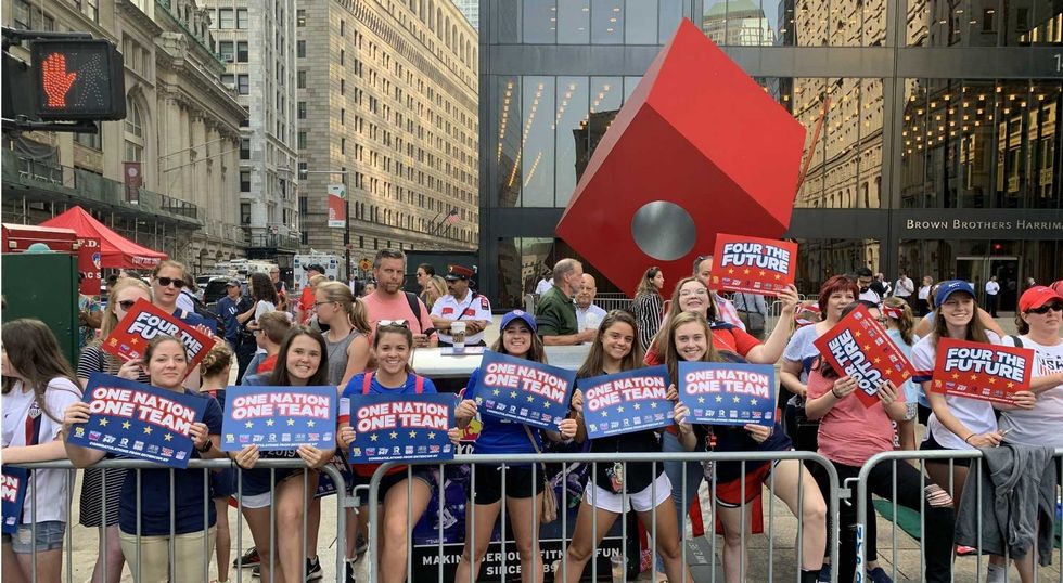 Fans line the Canyon of Heroes as the U.S. Women's National Team celebrates its fourth World Cup title after defeating the Netherlands 2-0 on Sunday, July 7th, 2019 .