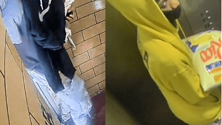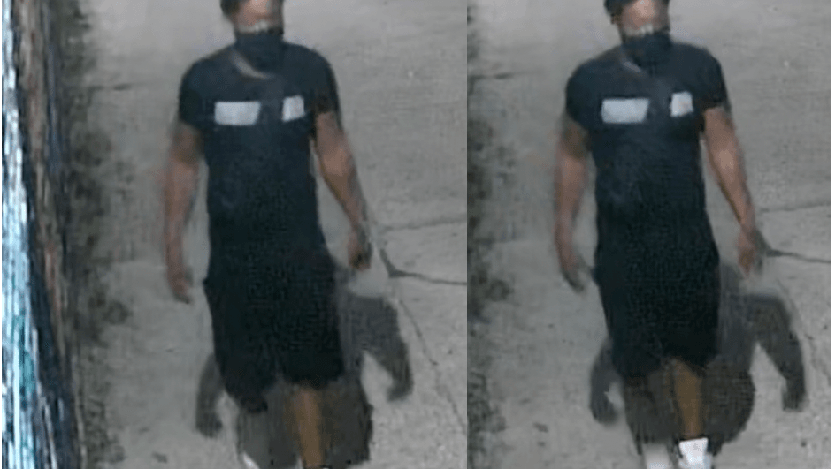 The suspect is described as being in his 30s, medium build and last seen wearing a camouflage jacket, black pants, black sneakers, red hoodie and a white face mask.