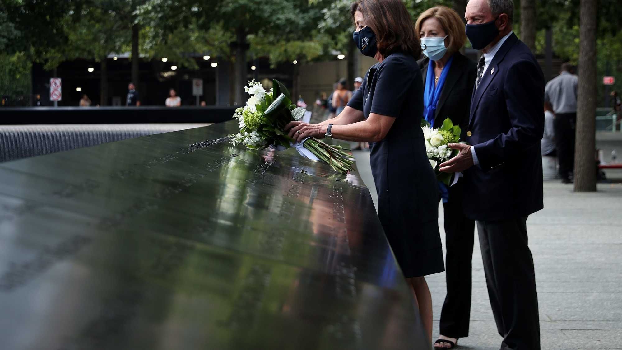 Bloomberg and Gov. Kathy Hochul visited the 9/11 Memorial Wednesday, laying flowers and paying respects to the lives lost 20 years ago this coming Saturday.