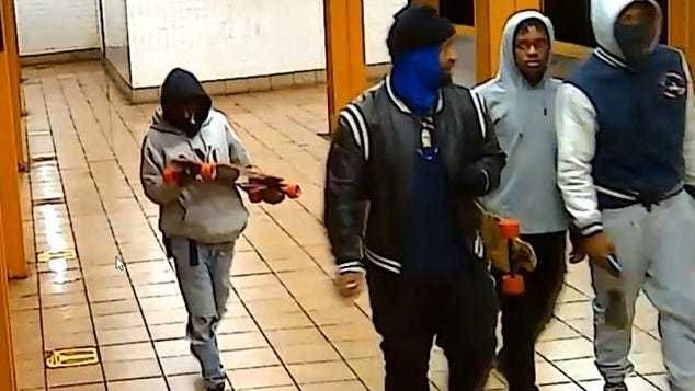 The trio punched and kicked the two employees repeatedly during the assault, police said.