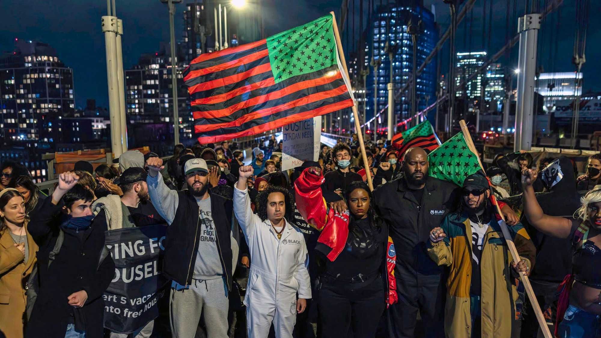 Demonstrators gathered at Barclays Center and marched over the Manhattan bridge on Thursday night.