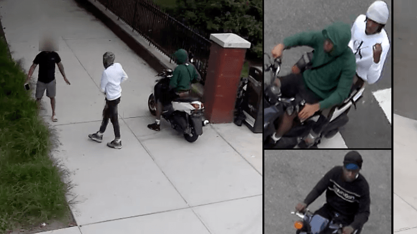 According to police, the suspects snatched his gold chain from his neck, causing him to fall to the ground then fled on the moped westbound on 48th Street with the stolen jewelry.