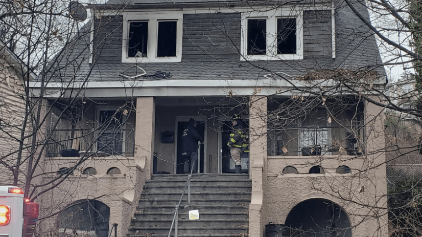 The three-alarm fire broke out on the second floor of the Howard Avenue home just before 5:30 a.m., fire officials said.