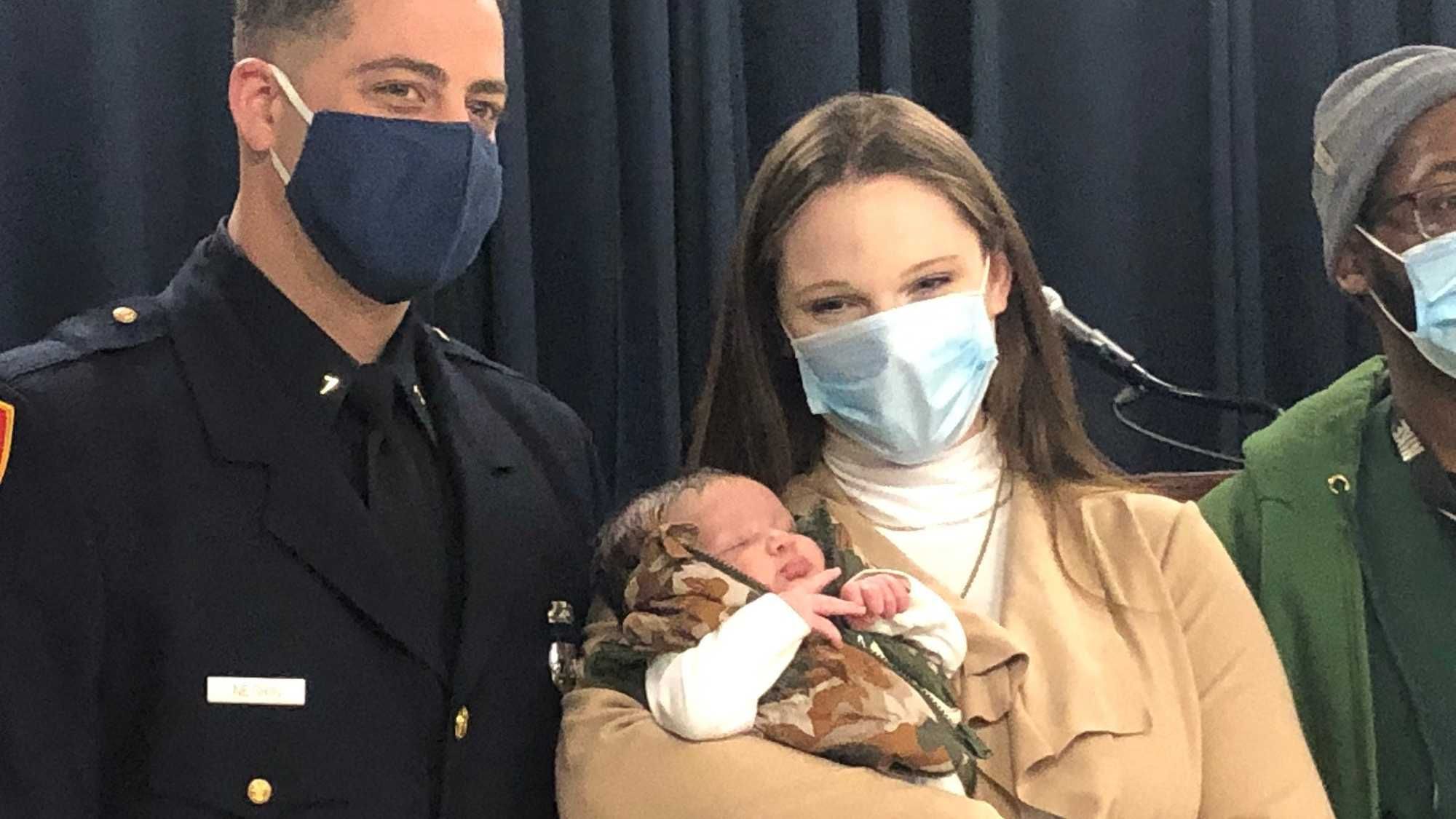 An ambulance also came to evaluate the baby who was found to be in good health.