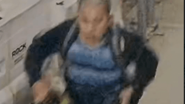 The suspect is described as having a dark skin complexion, about 25 to 30 years old with black hair and last seen wearing a gray shirt with a cartoon character in front of it, gray hoodie sweater with red letters, black sweatpants, black sneakers and carrying a black fanny pack.
