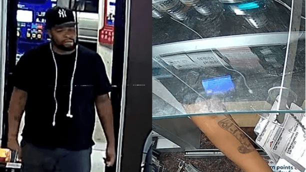 The suspect was last seen wearing a black t-shirt, and black shorts with a white stripe.