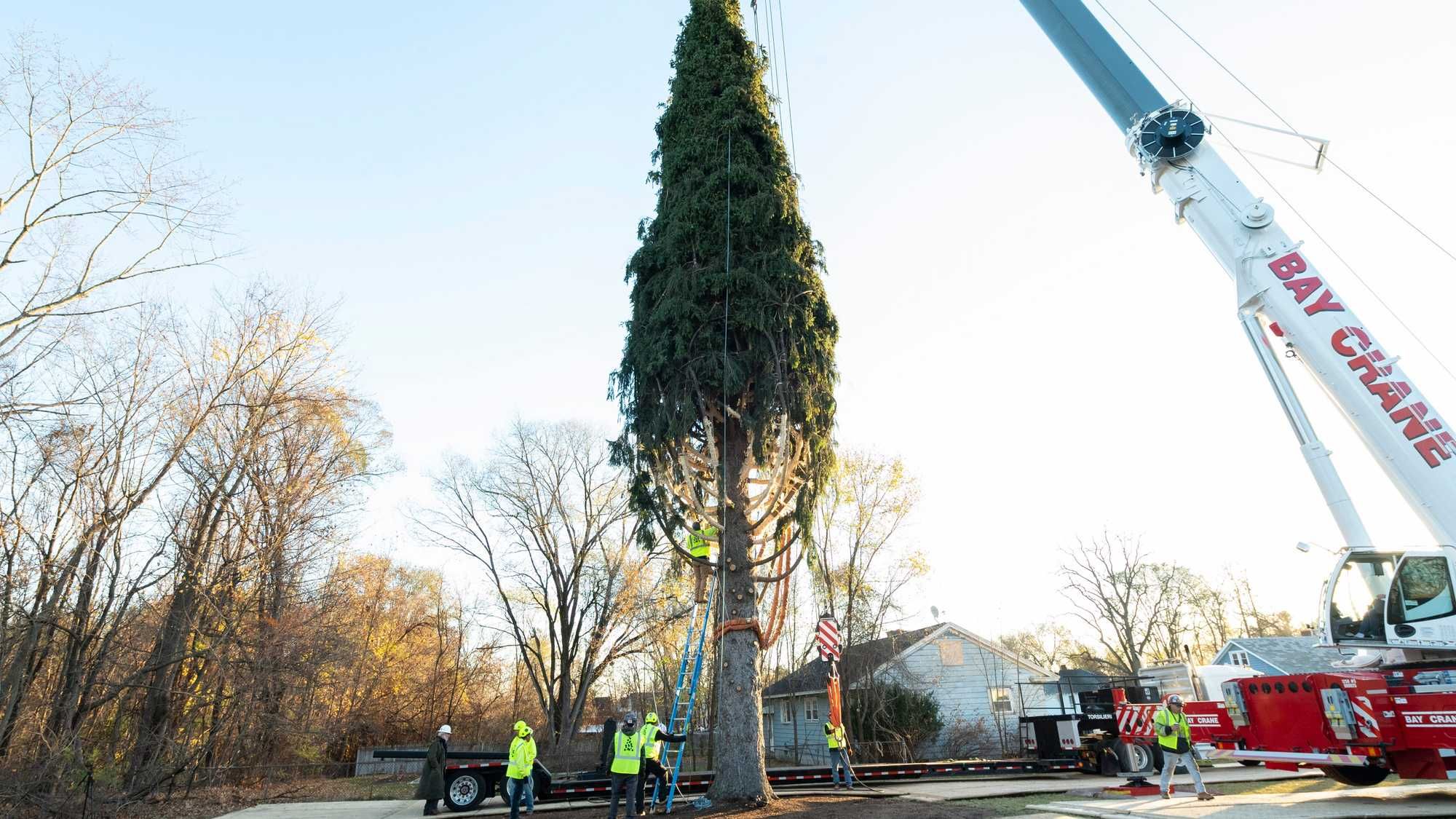 The tree will stay up through mid-January, after which it will be milled into lumber for Habitat for Humanity.