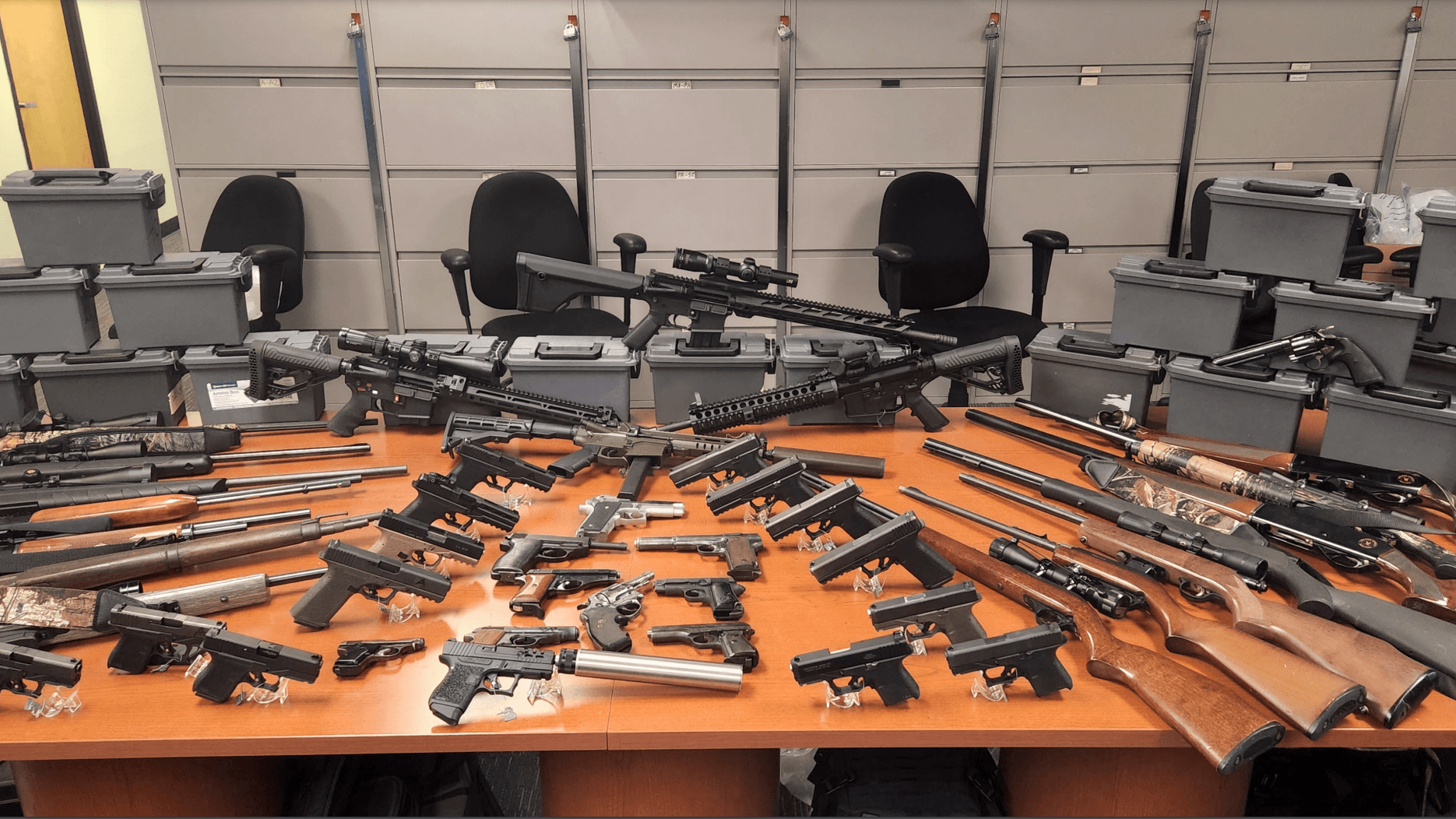 He had two gun permits that allowed him to possess some of the weapons, but he exceeded the number he was allowed and was also holding ghost guns — weapons with no serial number that are illegal.