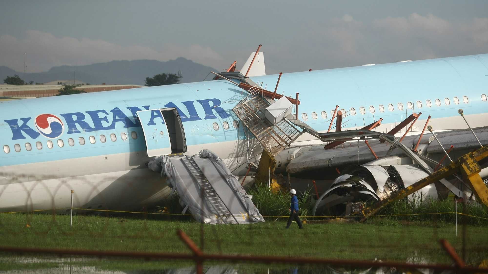 The plane knocked down bushes and headstones as it landed.