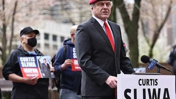 The video obtained by the New York Post shows Sliwa trying to calm the man down as he shouts at random passersby near Fordham Road and Webster Avenue in Fordham Heights, where the mayoral hopeful was taking part in a press conference about illegal street vendors.