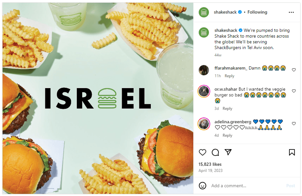 When Shake Shack announced last Spring it was heading to Israel, Michael Kark, Chief Global Licensing Officer of Shake Shack, said, "We have long admired the rich and diverse food culture of Israel, and we couldn't be more excited to arrive in Tel Aviv and reach 15 Shacks across Israel by 2033."