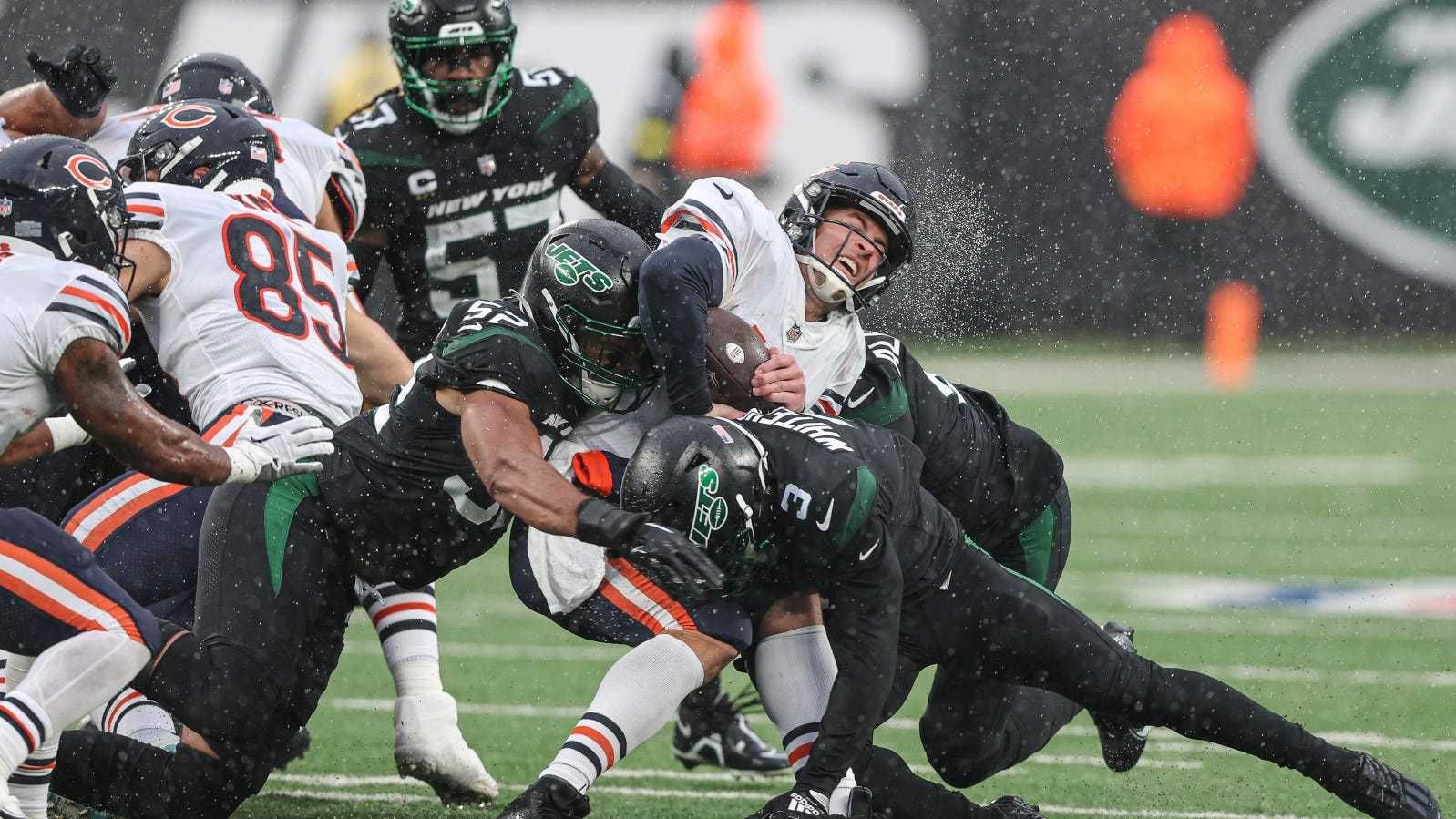 On defense, it only increased the degree of difficulty on a day that already had its share of challenges without rookie starters in safety Jaquan Brisker and cornerback Kyler Gordon, who both were sidelined by concussions. Linebacker Jack Sanborn can't make every tackle (it only seems like he does). Given the dropoff in production, you could argue that the defense losing Brisker and Gordon hurt more than the offense playing without Fields. Jets rookie receiver Garrett Wilson made that a persuasive argument with five catches for 95 yards, getting loose early and often.