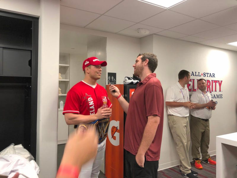 First, the American and National League Futures teams took BP, and then James Rapien interviewed some celebrities before the All-Star celebrity softball game in Rocket Mortgage FieldHouse before the game itself at Progressive Field.