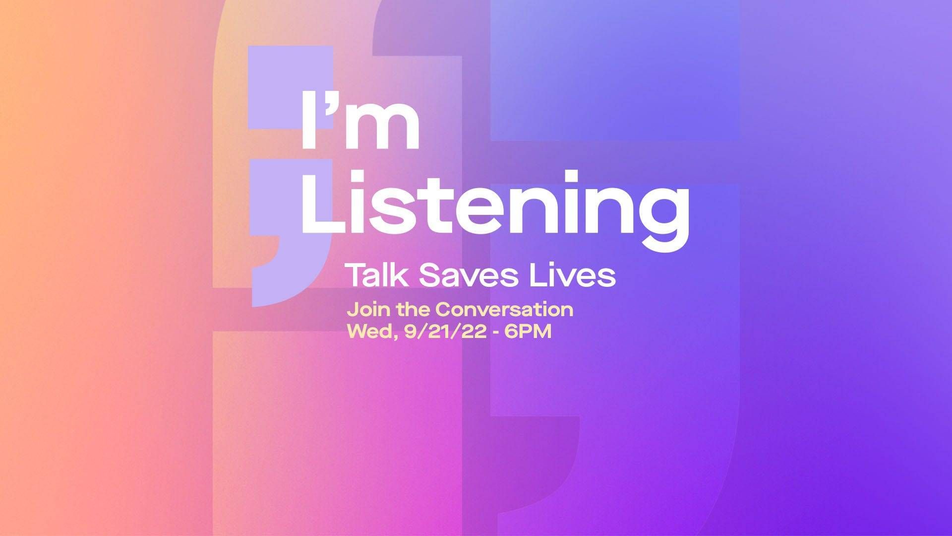 This year's I'm Listening event will feature artists, athletes, and experts sharing honest conversations about their personal experiences with mental health in a continued effort to raise awareness and support. Because talk saves lives.