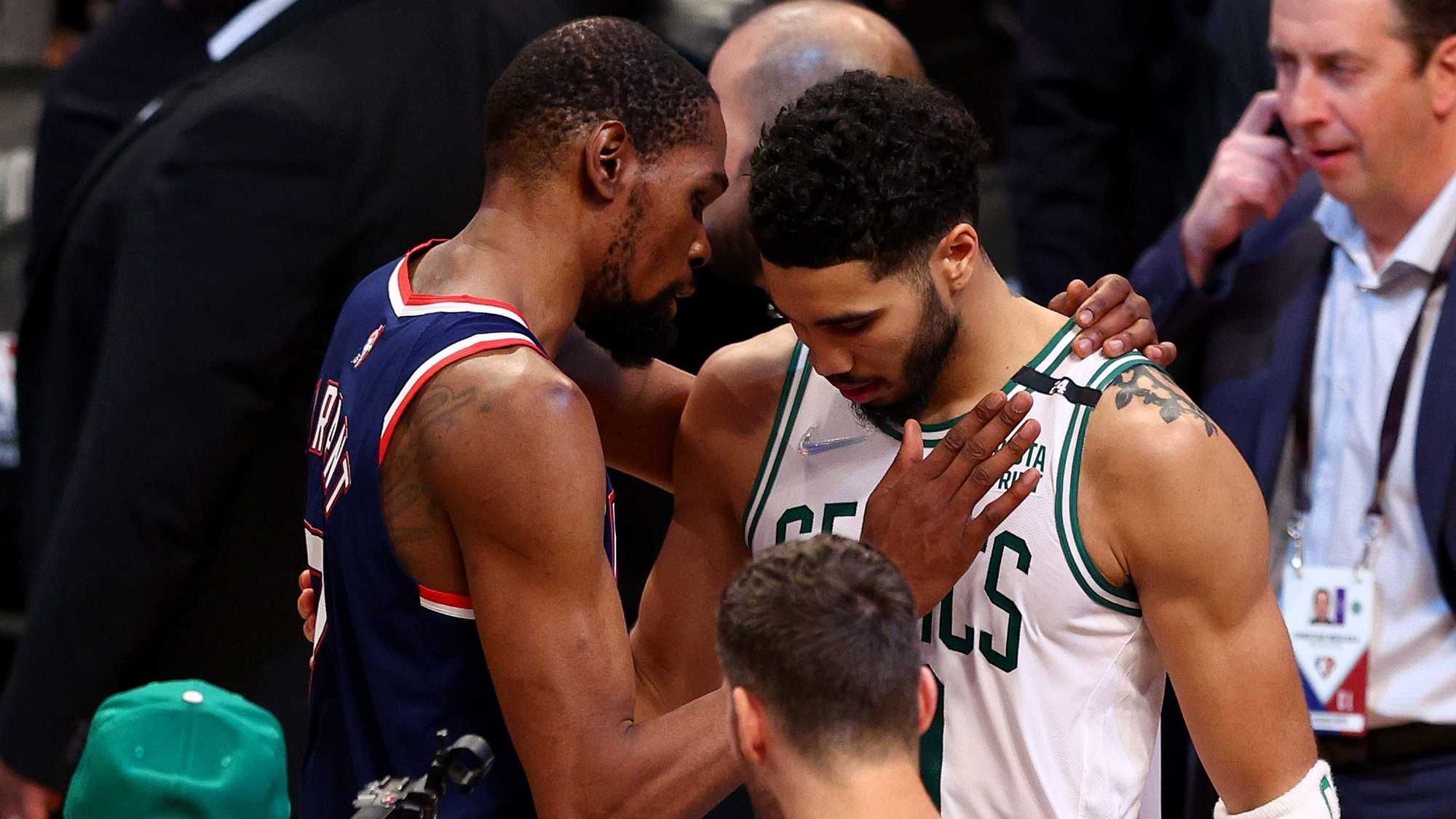 Irving remains at odds with Boston’s notoriously hostile fan base (a beef that will last to his dying day), though he’s still close with many of his former teammates including Tatum, a fellow Duke alum who has blossomed into one of the game’s brightest stars, neutralizing Kevin Durant in a way few thought possible. For all its hype—some were calling it the most anticipated opening-round matchup of our lifetime— the series was never in doubt with Boston, fueled by a stifling defense and one of the game’s elite talents in Tatum (who most would agree has ascended to another tier of stardom this season), holding all the cards.