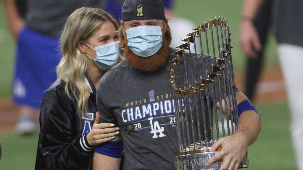 Turner and his wife remained in Texas, while California officials urged Dodgers fans who were celebrating the title without a mask to get tested.