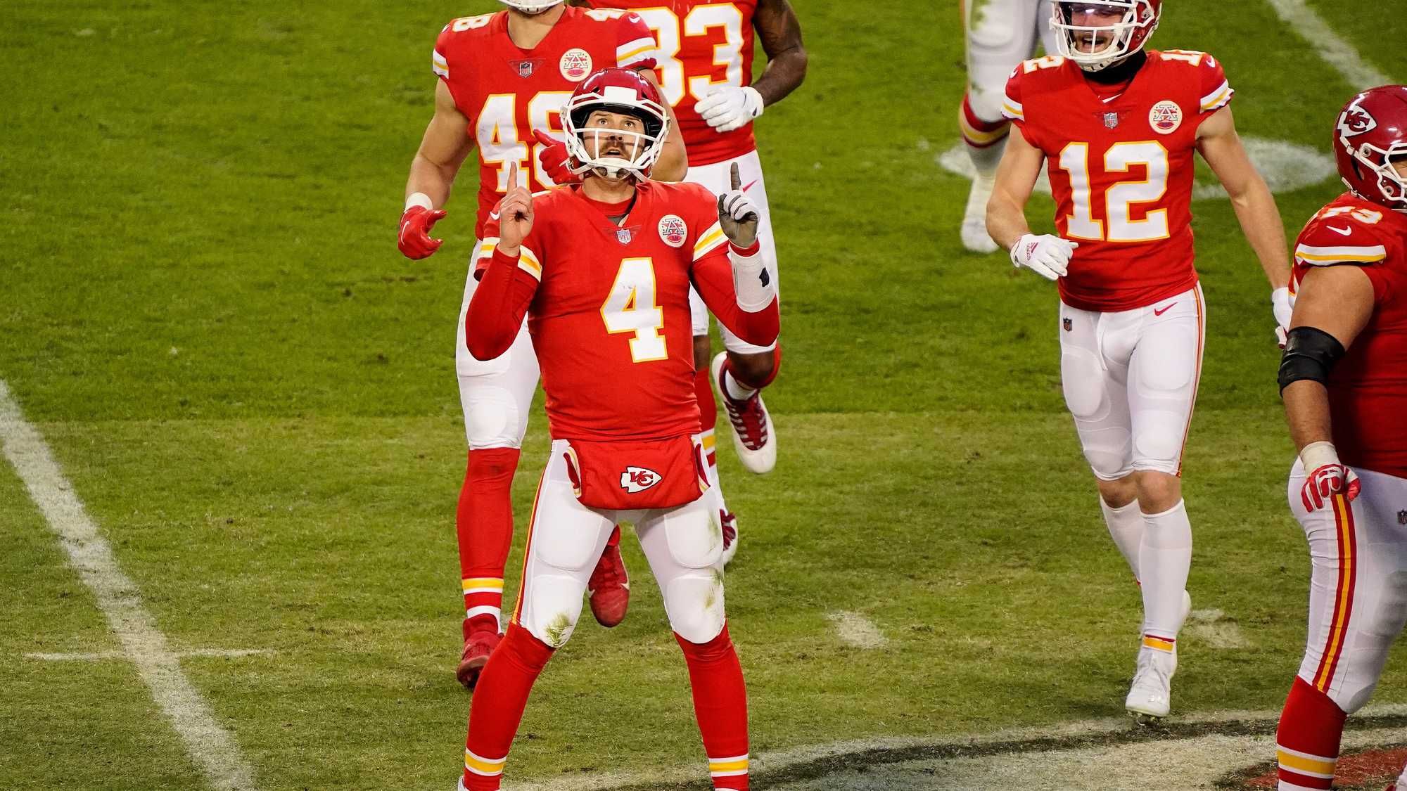 But by game's end, Mahomes was celebrating his team's win, particularly the play of backup quarterback Chad Henne.