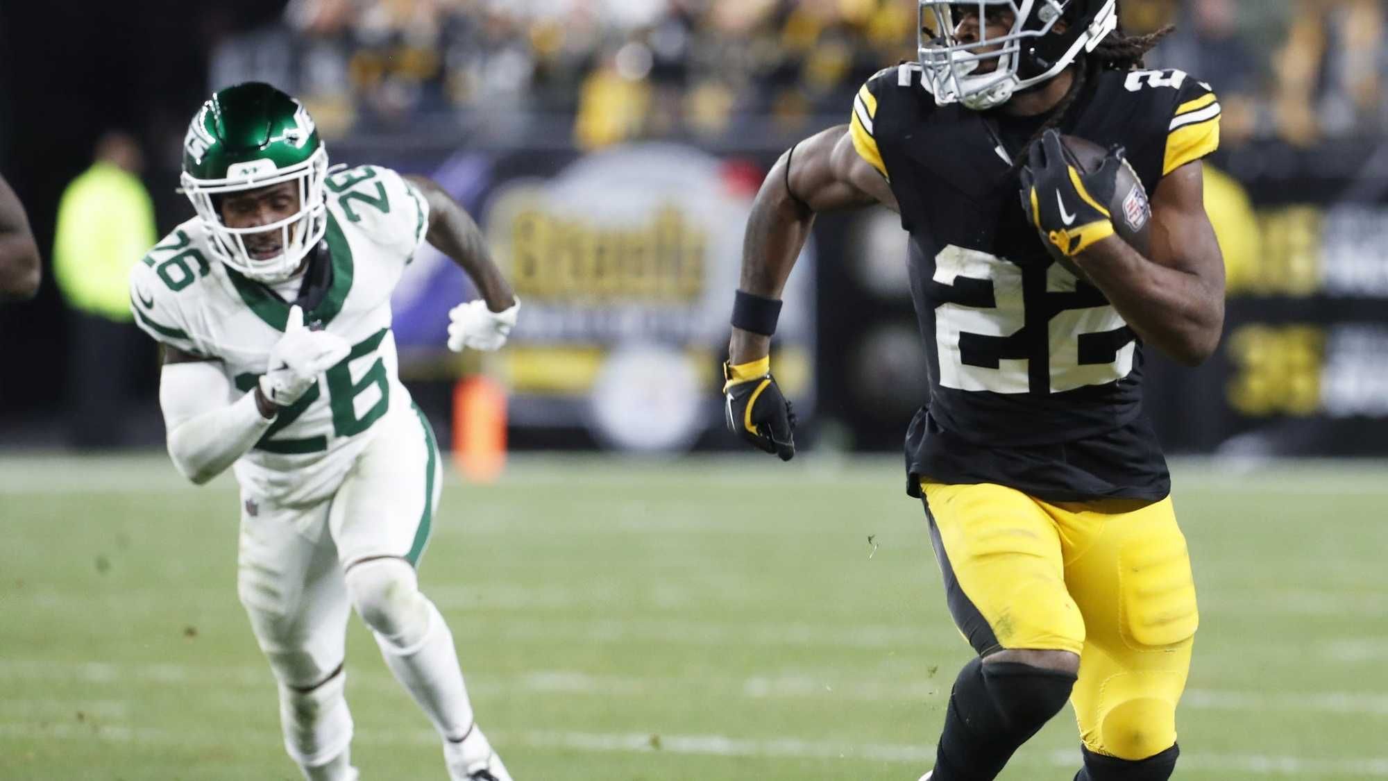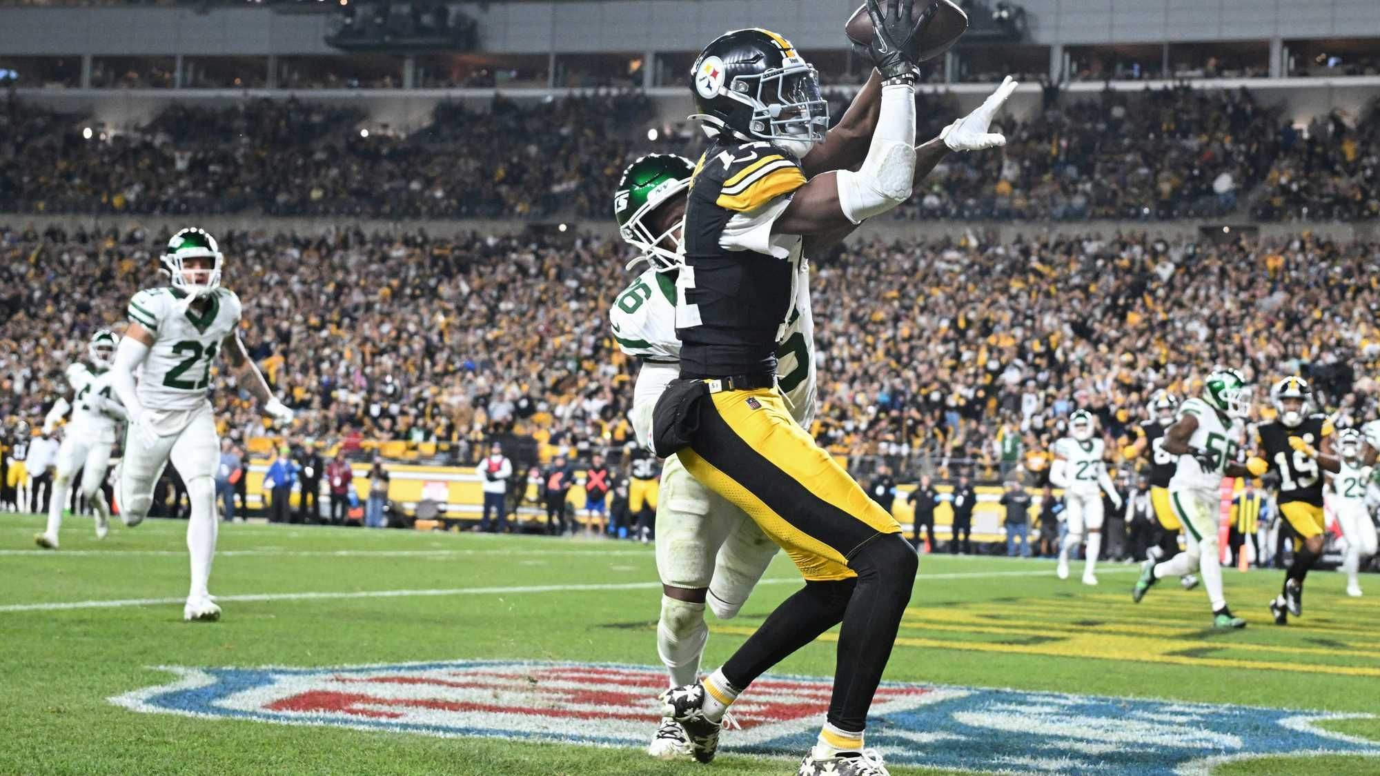 But then, Wilson made it pay off. It was a momentum changing play as Steelers rookie defensive back Beanie Bishop intercepted an Aaron Rodgers pass with 1:15 to play in the half. Wilson got the ball at the Steelers 46, hit Van Jefferson for 11 yards, was helped by a pass interference call where he gave George Pickens a chance to make a play. He finished it with an 11-yard touchdown to Pickens and the lead cut to two at half.