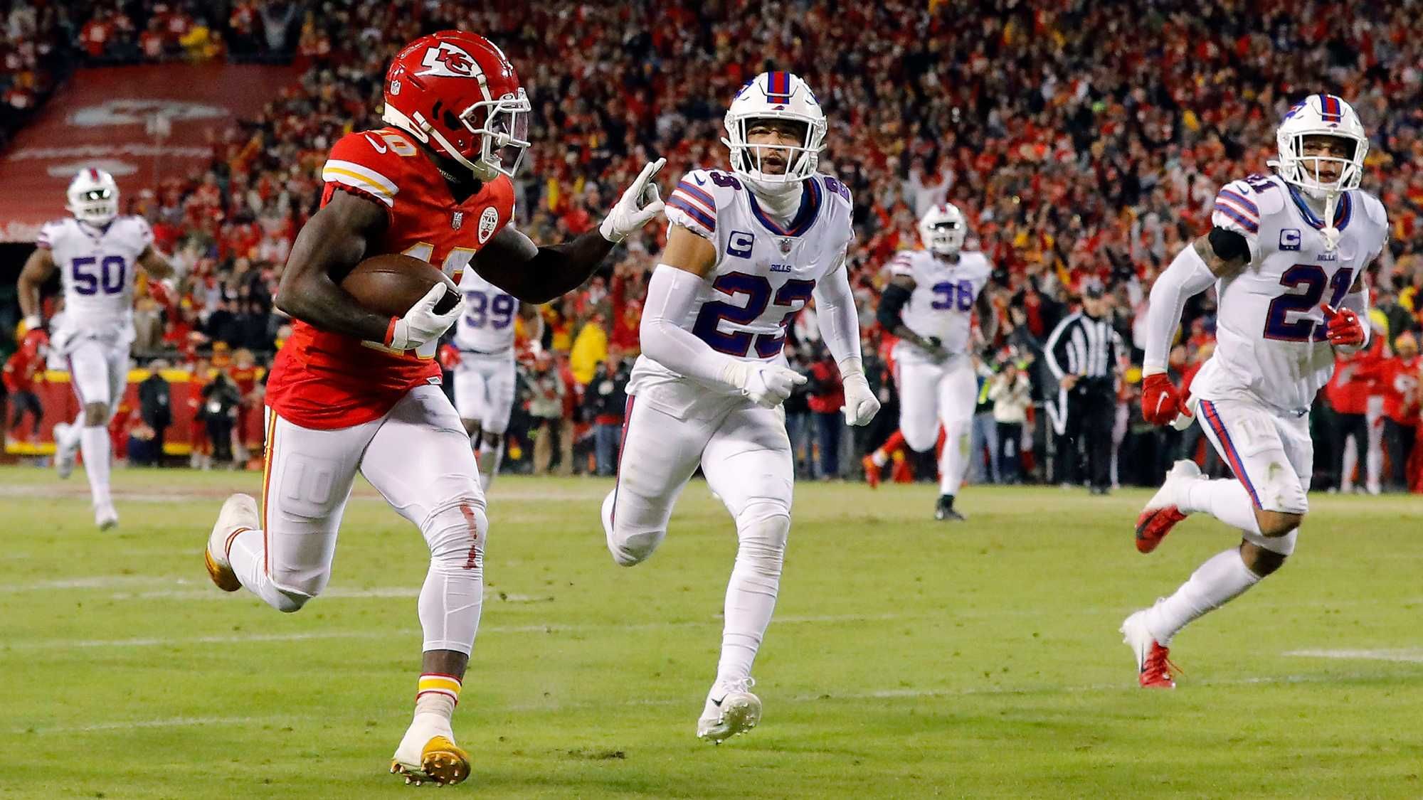 Many people will never forget the AFC Divisional Round this past season when Allen and Patrick Mahomes squared off in an instant classic game. While Mahomes helped his Chiefs reach a fourth-consecutive AFC Championship Game with an impressive 378-yard passing performance, Allen was, arguably, the best player on the field with 329 passing yards and four touchdown passes to Gabriel Davis. He also added 68 yards on the ground in the losing effort.