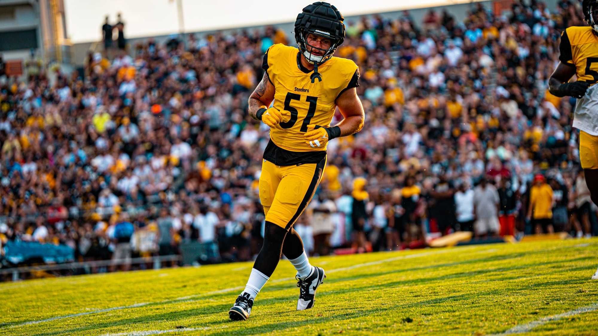 LATROBE, PA (93.7 The Fan) – Mike Tomlin returned from spending Friday night in Canton with Pro Football Hall of Fame inductee Ronde Barber and didn't let up. Tomlin said it was important to follow up a physical night practice with a physical day practice hours later. He said in the season you will be presented with quick turnarounds and he's preparing the team for that by working them hard back-to-back.