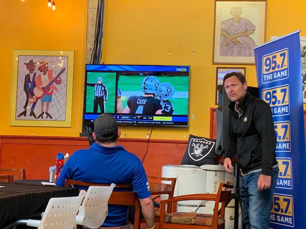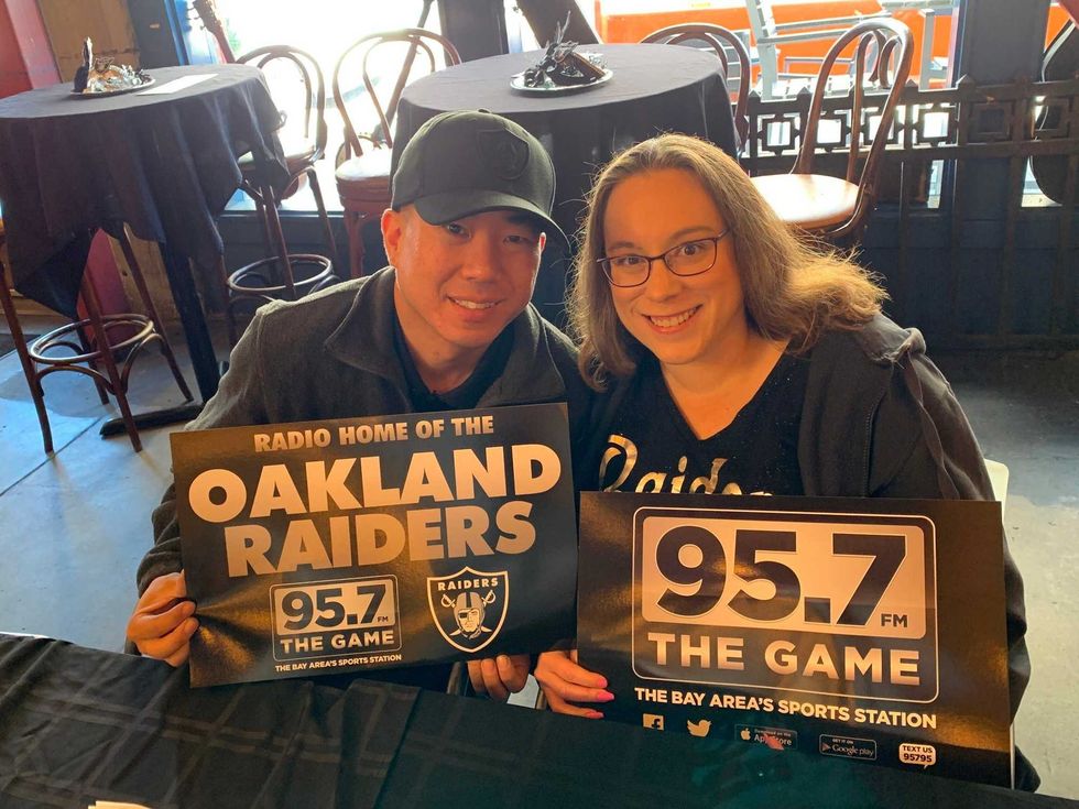 Raider Nation came out to Everett and Jones to watch a nail biter of a game as the home team went to jolly old England to play against the Chicago Bears. This game definitely had some "WOW" moments that gave the comeback win a really good feeling. 95.7 crew enjoyed every moment with fans as well as hooking up people with autograph Raider memorabilia. Even though the game wasn't pretty, it's nice to know that the Raiders can make it through week 5 and "Just Win Baby".