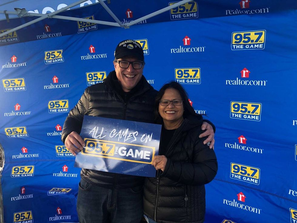 95.7 The game had another great time cheering on the Golden State Warriors with you all today! Thank you to all of our listeners who stopped by the tent to say hi, and grab some cool prizes! Be sure to catch us again, this Saturday at the Oracle Orena!