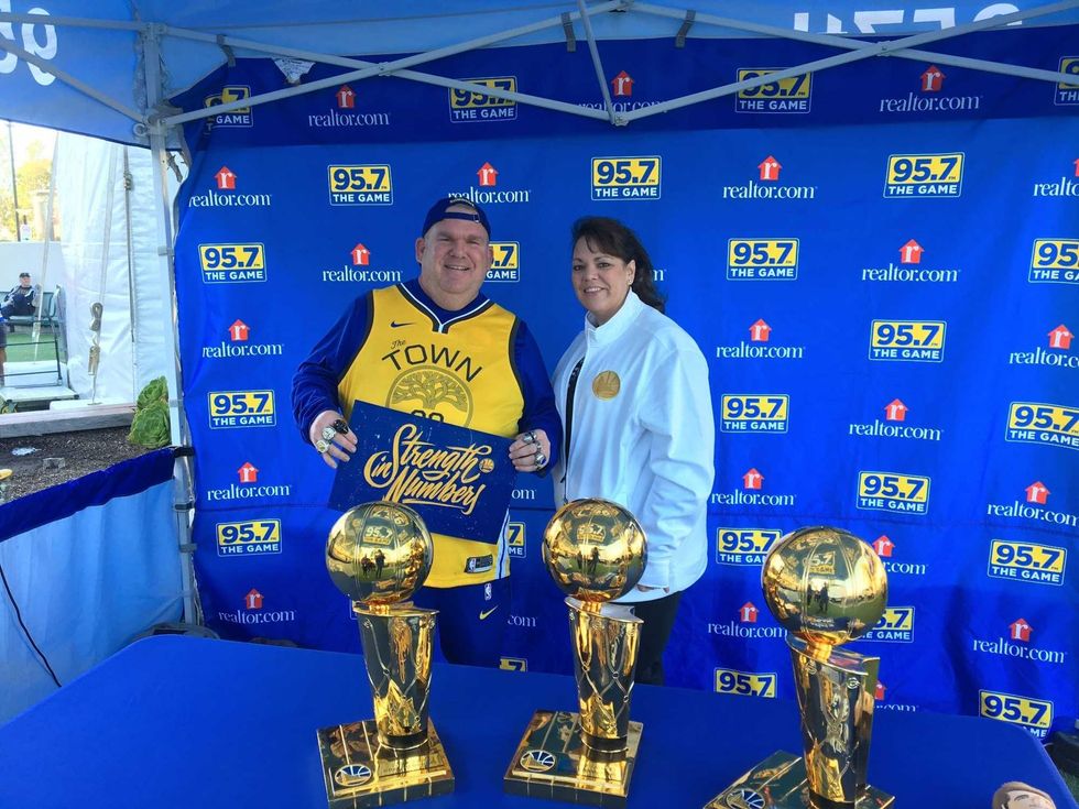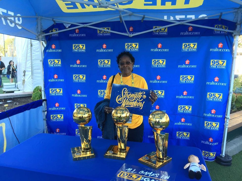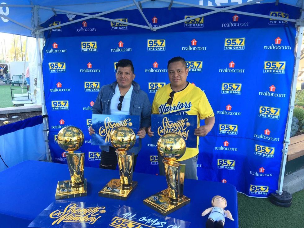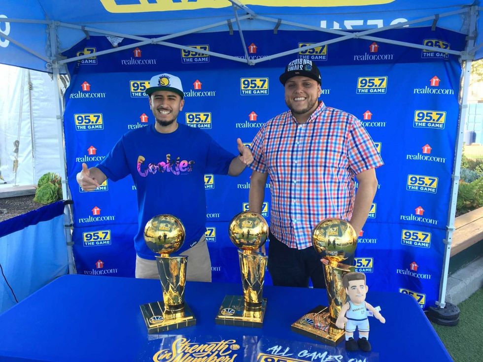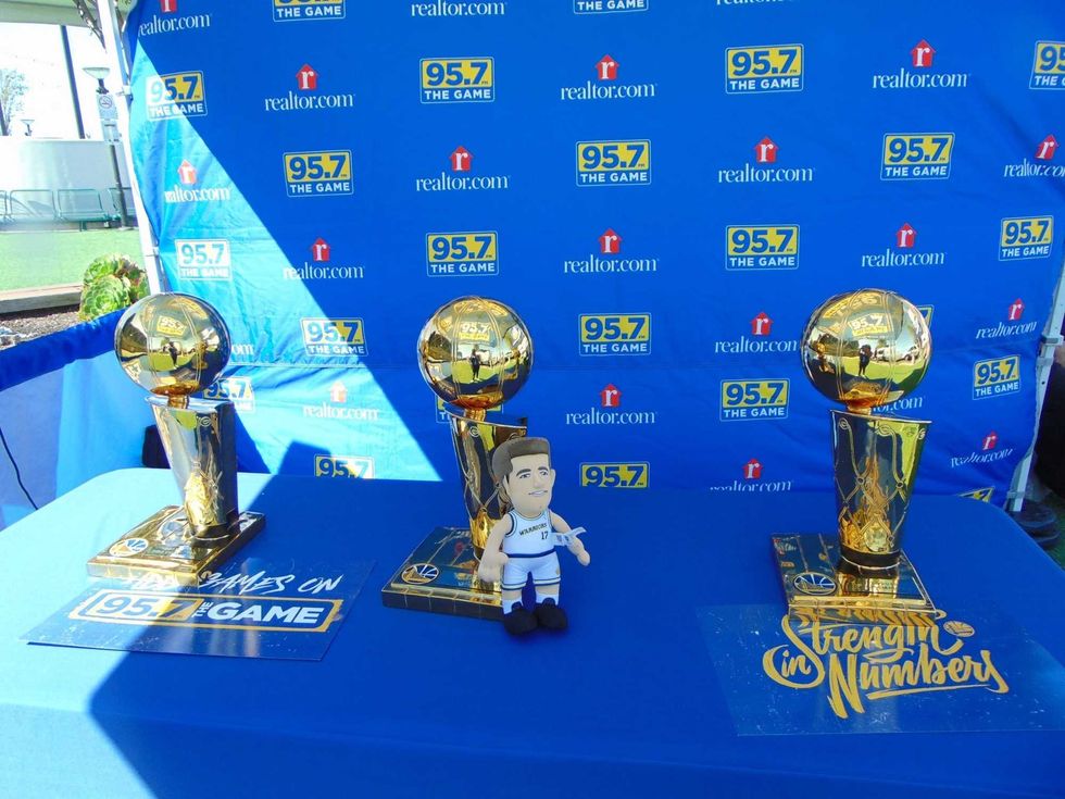 Dub Nation came correct as the Warriors hope to close it out for game five against the Clippers. 95.7 crew had a ton of fans linning up for photos with our replica trouphies as well as picking up some cheer cards. The energy to close out round one was in the air and we were happy to be apart of it all.