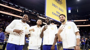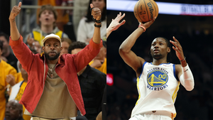 Andre Iguodala appears to give Jonathan Kuminga pep talk during Warriors-Kings Game 4April 24, 2023