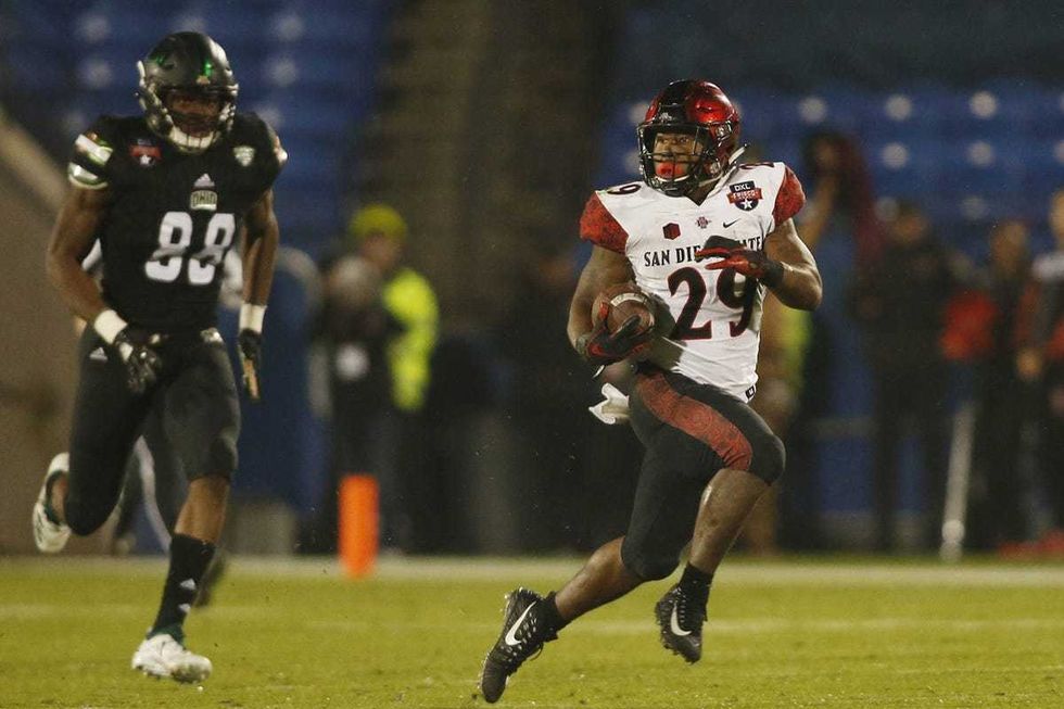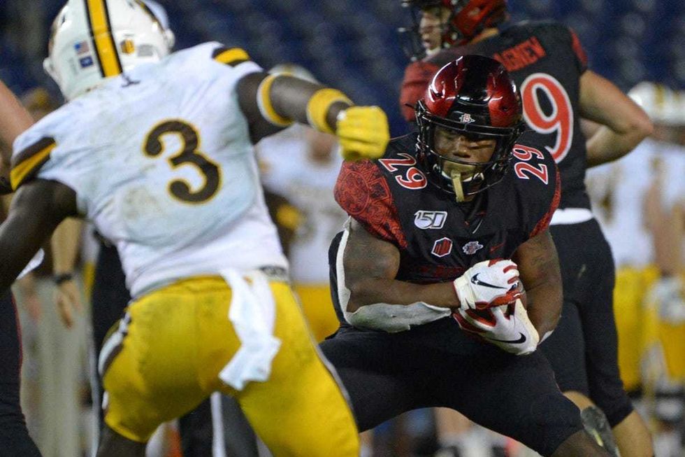 San Diego State running back Juwan Washington is the Aztecs' leading rusher this season, despite missing 2 games. Washington has logged 432 yards on 119 carries, to go along with 94 yards and 14 receptions and 4 total touchdowns. Washington is one of SDSU's most dynamic offensive players, and a big reason the team is currently 7-1 and ranked 25th in the nation.