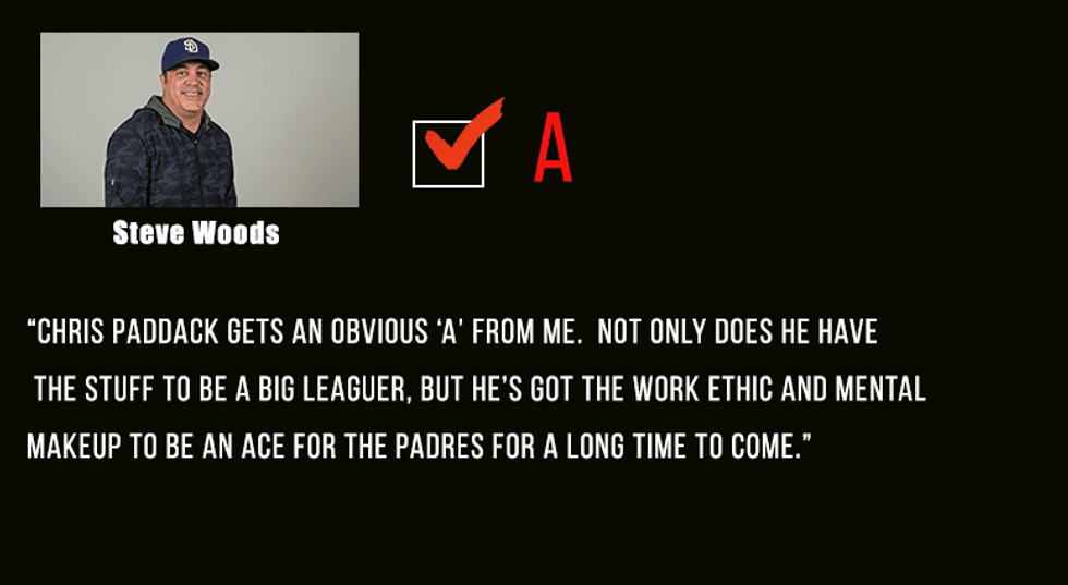 Chris Paddack gets an obvious A from me. Not only does he have the stuff to be a big leaguer, but he's got the work ethic and mental makeup to be an ace for the Padres for a long time to come.