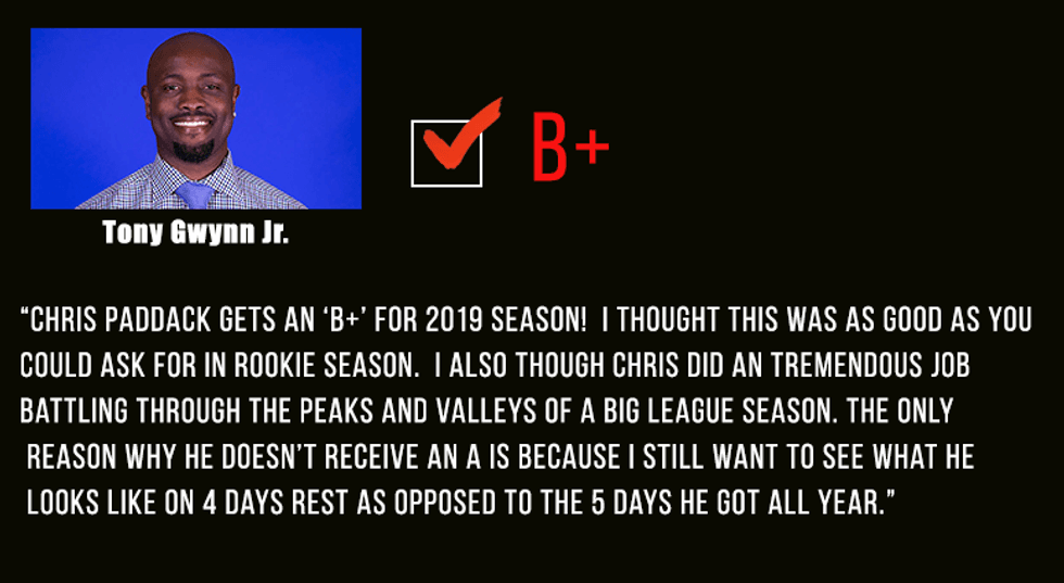 Here are the grades Paddack got from Coach Kentera, Gwynn & Chris, and Ben & Woods.