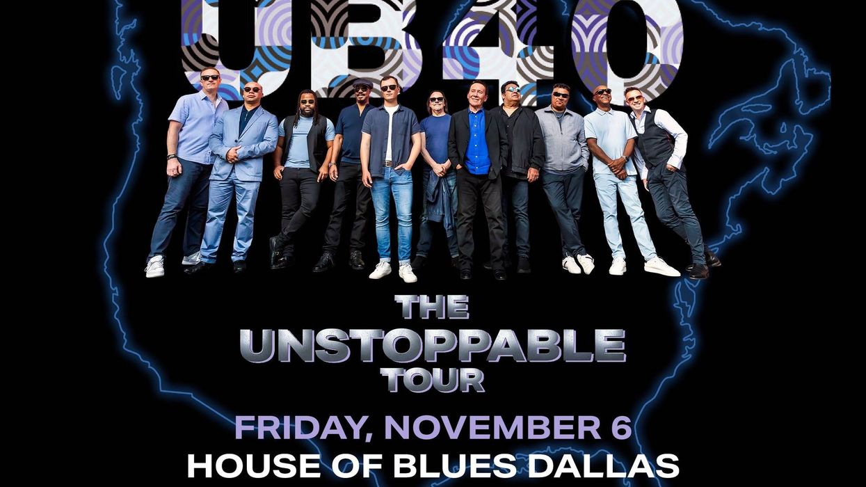 {'byline': '', 'hosts': '', 'byline_sources': '', 'hide_author': True, 'audience_id': '', 'venue_address': '<p>2200 N Lamar St, Dallas, TX 75202</p>', 'venue_name': 'House of Blues', 'timezone': 'US/Central', 'start_date_time': '2026-11-06 19:00', 'start_date_time_ts': 1794013200.0, 'unpublish_at': 1794027600.0, 'event_dates': '', 'original_item': {'_index': 'published-content_v44', '_type': '_doc', '_score': None, '_source': {'date': '2026-02-12T17:23:47.057+00:00', 'lead': [{'data': {'alt': 'UB40', 'url': 'https://radioimg.audacy.com/aiu-media/StaticDigital2400x1575UB402026RegionalHouseofBluesDallas1106-b0c5f5dd-d10e-4870-9e1e-08d06e17cbc8.jpg', 'width': 2400, 'credit': 'Live Nation', 'height': 1575, 'caption': 'UB40', '_version': 1, 'imageLink': None, 'rendition': None, 'sizeInBytes': '363194', 'borderToggle': None, 'componentVariation': 'image'}, 'original_ref': 'www.audacy.com/_components/image/instances/cmljq8ho1001e3b77hfcu21nv@published'}], 'slug': 'ub40', 'tags': ['EVENTS'], 'feeds': {'rss': True, 'postup': True, 'frequency': True, 'apple-news': False, 'reversechron': True}, 'adTags': {'original_ref': 'www.audacy.com/_components/ad-tags/instances/cmljq5ewg002c01tg1wvtgumf@published'}, 'byline': [], 'teaser': 'UB40', 'authors': [], 'content': [{'data': {'text': 'UB40 is heading back to North Texas!', '_version': 2, 'componentVariation': 'paragraph'}, 'original_ref': 'www.audacy.com/_components/paragraph/instances/cmljq5zit000f3b77fzuw20q9@published'}, {'data': {'text': 'They are bringing the Unstoppable Tour to the House of Blues in Dallas Friday, November 6!', '_version': 2, 'componentVariation': 'paragraph'}, 'original_ref': 'www.audacy.com/_components/paragraph/instances/cmljq66j6000p3b777dysnqwv@published'}], 'sources': [], '_version': 3, 'headline': 'UB40', 'pageTitle': 'UB40', 'sideShare': {'original_ref': 'www.audacy.com/_components/share/instances/cmljq5ewg002d01tgyjorjqb7@published'}, 'startDate': '2026-11-06', 'startTime': '19:00', 'venueName': 'House of Blues', 'eventDates': [{'endTime': '23:00', 'startDate': '2026-11-06', 'startTime': '19:00', 'endDateTime': '2026-11-06 23:00', 'startDateTime': '2026-11-06 19:00'}], 'feedImgUrl': 'https://radioimg.audacy.com/aiu-media/StaticDigital2400x1575UB402026RegionalHouseofBluesDallas1106-0c7d0135-c36b-4ace-a9fe-990b3b39dad5.jpg', 'breadcrumbs': [{'url': '//www.audacy.com/987thespot', 'text': '98.7 The Spot', 'hidden': False}, {'url': '//www.audacy.com/987thespot/events', 'text': 'events', 'hidden': False}], 'contentType': 'event', 'seoHeadline': 'UB40', 'stationName': '98.7 The Spot', 'stationSlug': '987thespot', 'dateModified': '2026-02-12T17:23:47.048Z', 'venueAddress': '<p>2200 N Lamar St, Dallas, TX 75202</p>', 'fullWidthLead': False, 'shortHeadline': 'UB40', 'unityPageType': 'event', 'seoDescription': 'UB40 is heading back to North Texas! They are bringing the Unstoppable Tour to the House of Blues in Dallas Friday, November 6! ', 'isContentFromAP': False, 'noIndexNoFollow': False, 'pageDescription': 'UB40 is heading back to North Texas! They are bringing the Unstoppable Tour to the House of Blues in Dallas Friday, November 6! ', 'primaryHeadline': 'UB40', 'stationCallsign': 'KSPFFM', 'stationTimezone': 'US/Central', 'socialDescription': 'UB40', 'componentVariation': 'event', 'stationSyndication': [], 'rollingStandoutCount': 0, 'plaintextShortHeadline': 'UB40', 'eventDatesContentHeader': None, 'plaintextPrimaryHeadline': 'UB40', 'canBeMarkedGoogleStandout': True, 'availableStandoutArticleInventory': True, 'articleWithinGoogleStandoutPublishDateLimit': True, 'canonicalUrl': 'http://www.audacy.com/987thespot/events/ub40', 'site': 'demo'}, 'sort': [5920111], 'stationSlug': '987thespot', 'original_id': 'www.audacy.com/_components/event/instances/cmljq5ewg002e01tgt1znqd7h@published'}}