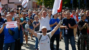 Embattled Belarus leader jeered by workers as strikes grow
