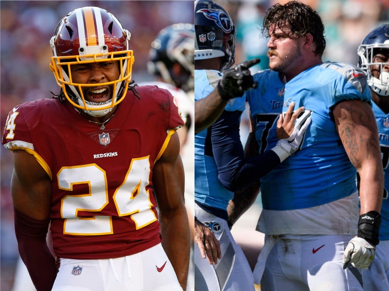 Titans offensive lineman Taylor Lewan made his way over to the Redskins bench area and said something to Washington cornerback Josh Norman. Lewan reportedly said, "Get the f--- out of my stadium."