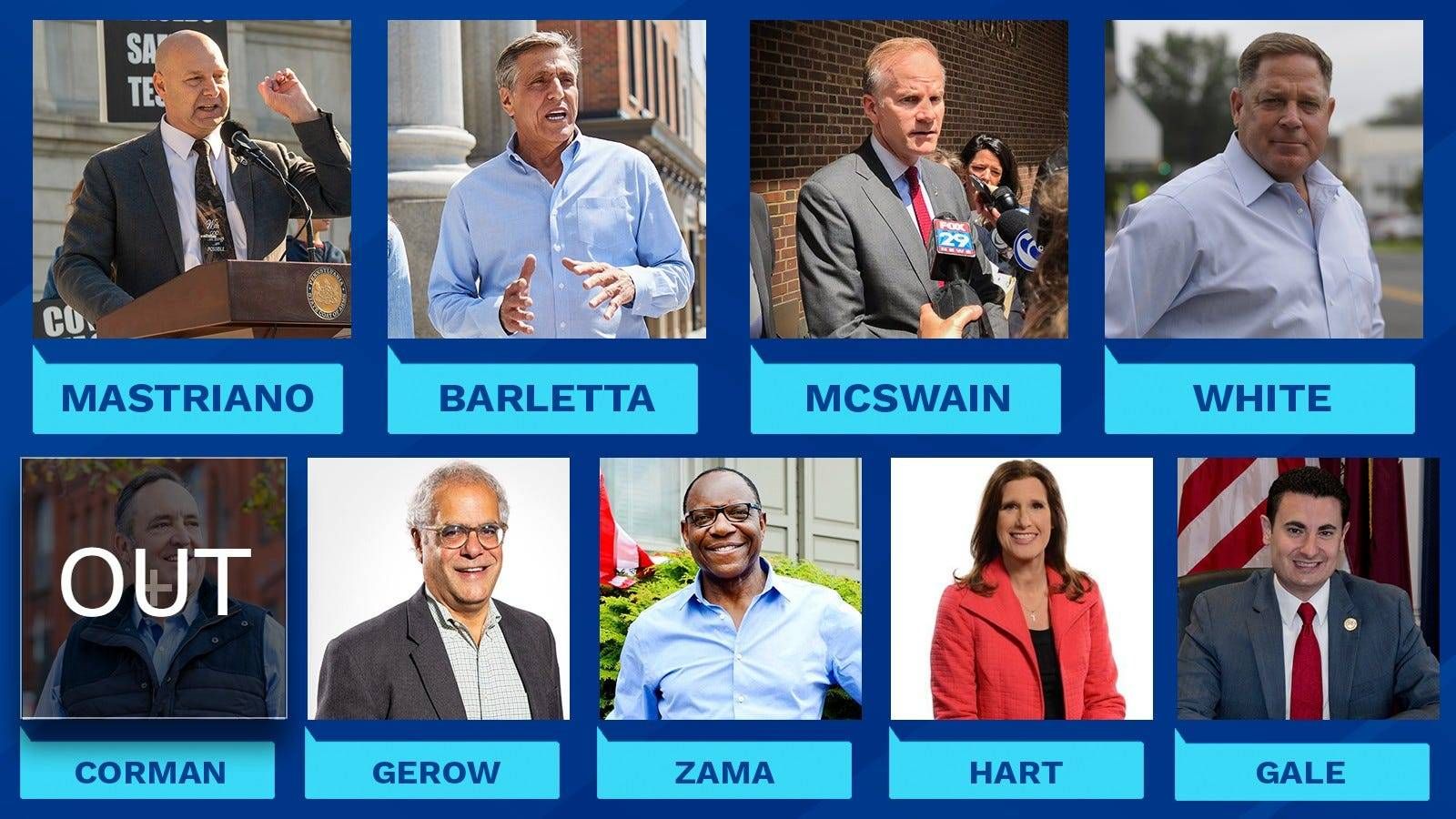 The Republican primary is crowded, but recent polling shows four candidates have pulled ahead of the pack. Pa. Sen. Doug Mastriano, polling consistently around 25%, is trailed by former Lehigh Valley Rep. Lou Barletta, former U.S. Attorney Bill McSwain, and businessman and former Delaware County Councilman David White.