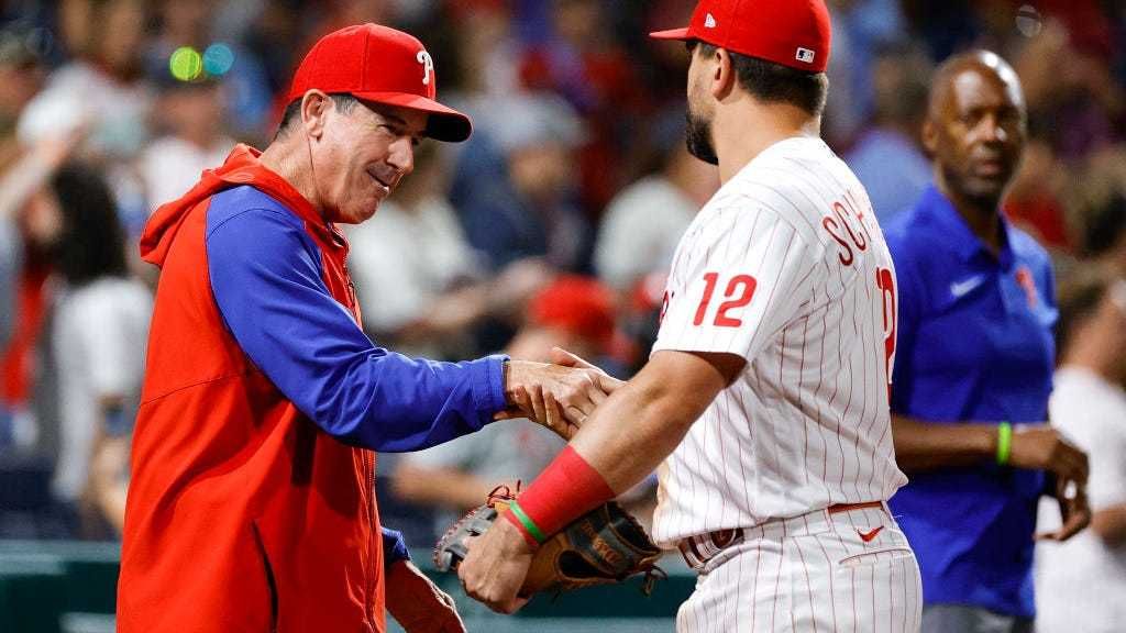Alec Bohm added three hits, a day hitting a pair of three-run homers, as Philadelphia moved ahead of idle San Diego for second place in the NL wild-card race. The Phillies rebounded from a disappointing four-game weekend home series against the NL East-leading Mets in which they dropped three of four.