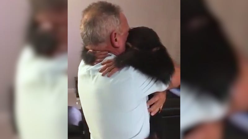Watch as this sweet little chimp gleefully shrieks while reuniting with his foster mom and dad, Jorge and Tania, jumping into Jorge’s arms to be held tight.