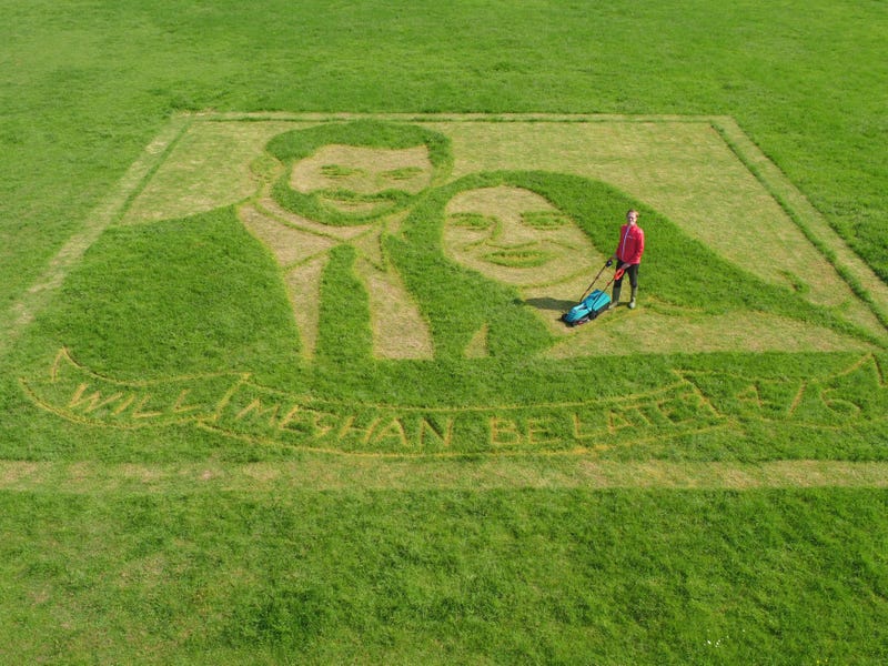 Artist Chris Naylor carved the royal couple's official engagement picture into a stretch of grass using only a lawnmower.