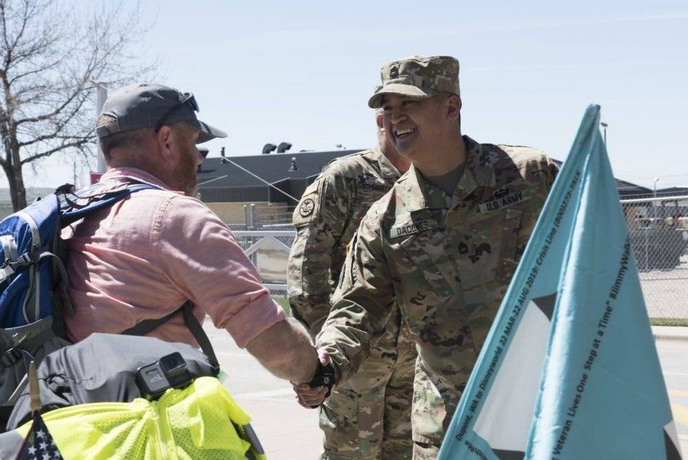 "Anything that generates more awareness of suicide, I support," said Maj. Gen. Michael Garshak, adjutant general of Idaho and commander, Idaho National Guard. "It was an honor to shake hands with Jimmy as he entered the gates at Gowen Field and I wish him luck in this endeavor."