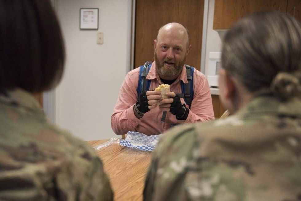 Sgt. 1st Class Baltazar Dacones, from the Idaho Army National Guard, heard about Novak's story and wanted to help. Dacones reserved a room on base for Novak and provided him with food and toiletries for his stay that night. Additionally, Dacones supplied extra food for Novak before he walked toward Mountain Home the following day.