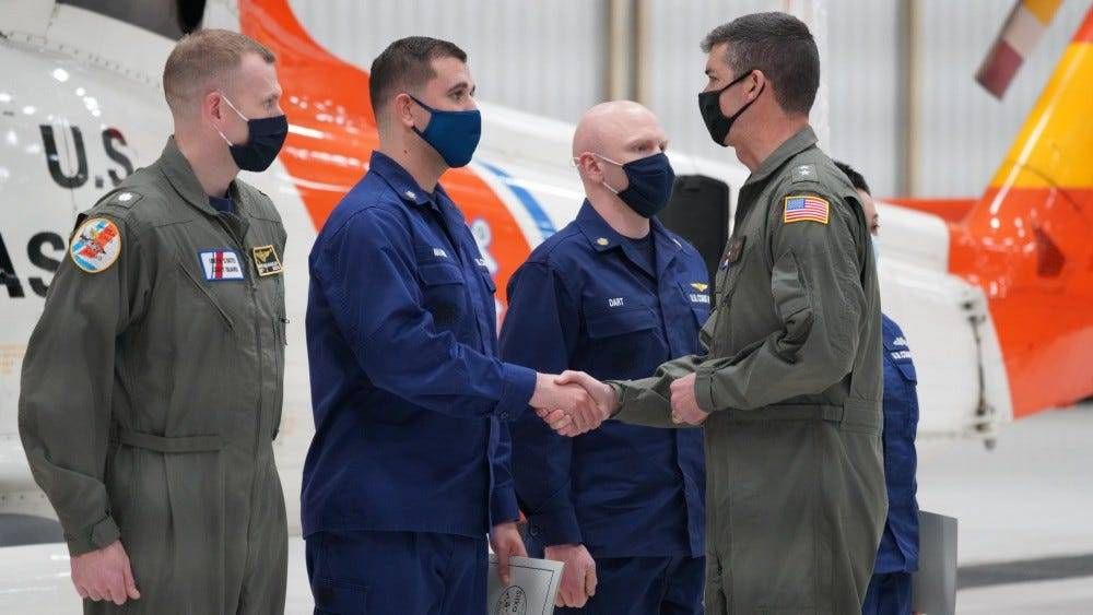 After consulting with his land crew, Derreumaux phoned the Coast Guard for a rescue Saturday night about 70 miles (113 km) west of Santa Cruz. A diver was lowered from a helicopter into the water and helped hoist Derreumaux up.