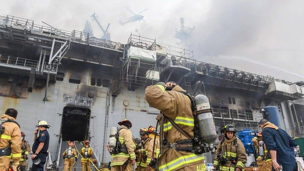 U.S. Navy officials on Tuesday said that while crews at sea consistently meet high firefighting standards, those skills drop off when ships move into maintenance periods. The Bonhomme Richard was undergoing maintenance at the time of the fire.
