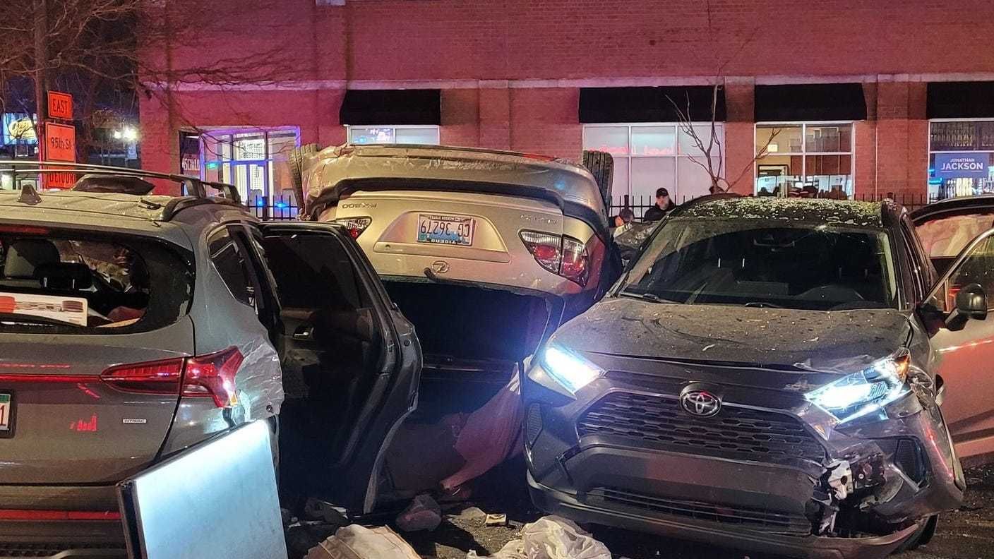 As the 86-year-old driver went to turn into the dealership, the SUV was struck by another vehicle and rolled over.