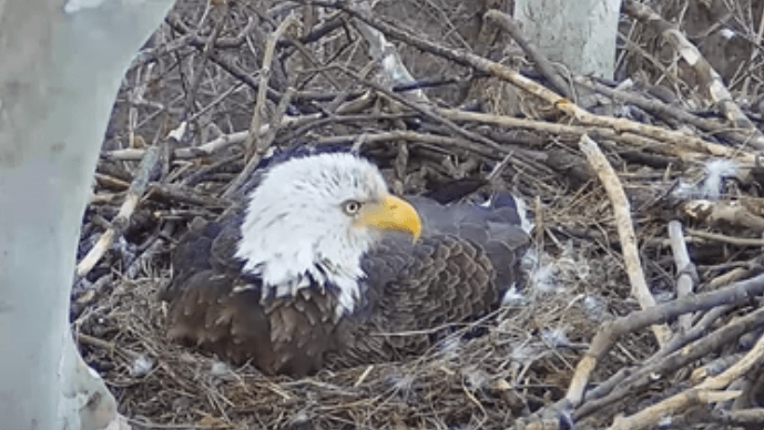 Two eaglets hatched in the Hays nest one two separate days last week.