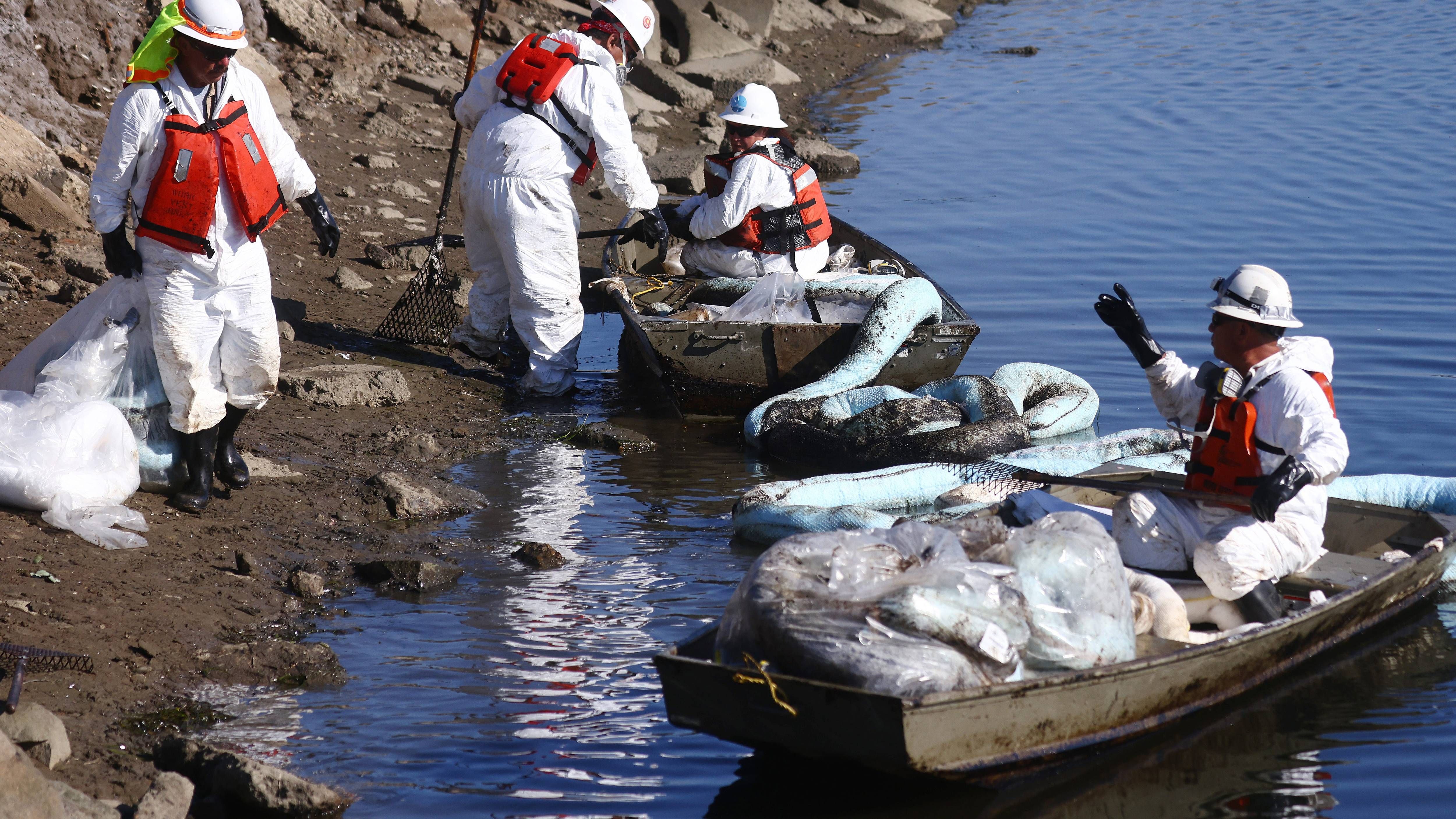 HUNTINGTON BEACH, Calif. (KNX) — An oily sheen spotted off the coast of Orange County may have been residue from a crude oil spill last month, according to state officials. The spill sent roughly 26,000 gallons of oil into the Pacific Ocean, producing a massive oil slick that washed ashore from Huntington Beach to Dana Point.