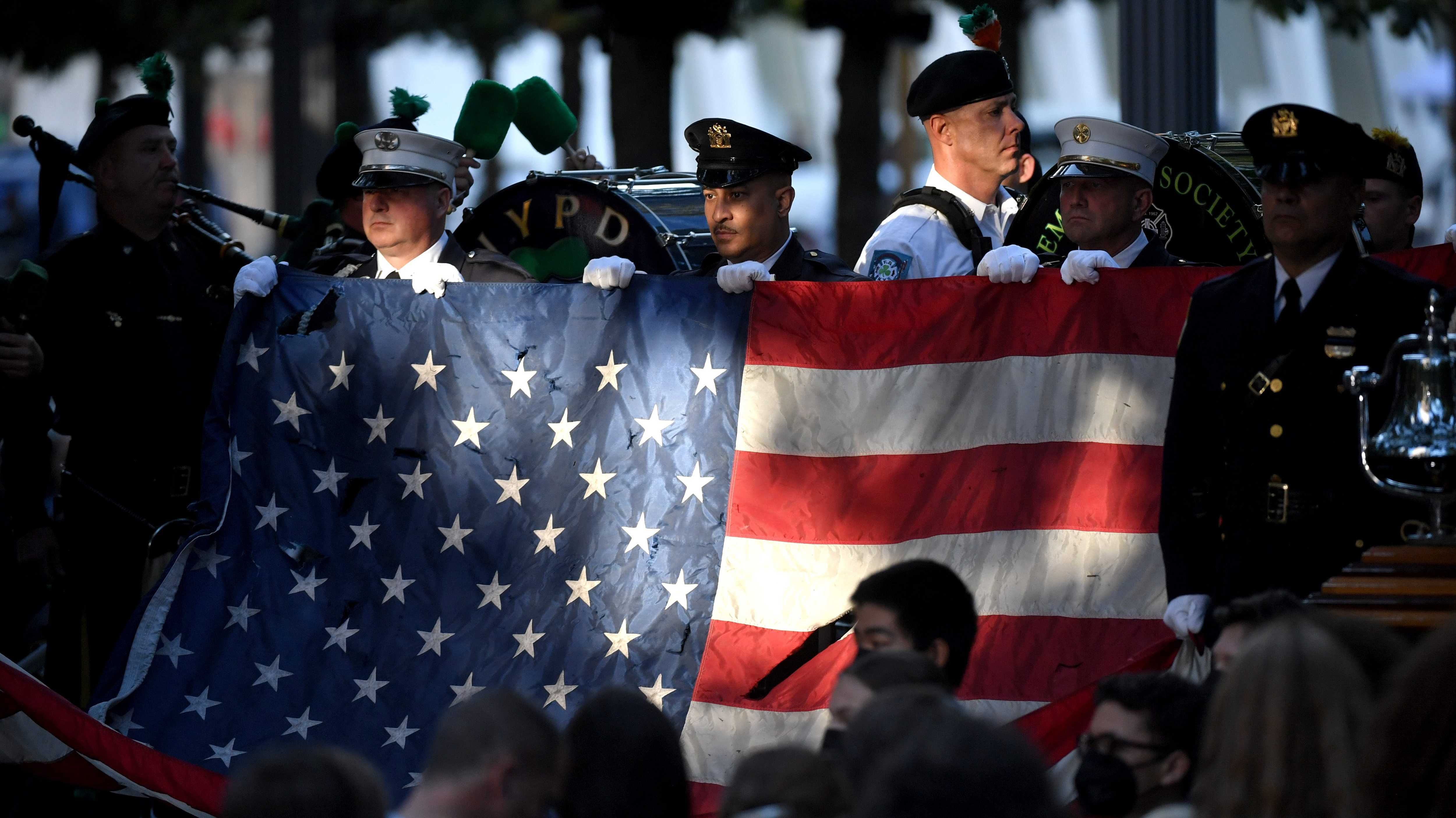 The performance followed the second moment of silence observed at 9:03 a.m., marking the time United Airlines Flight 175 struck the South Tower of the World Trade Center 20 years ago Saturday.
