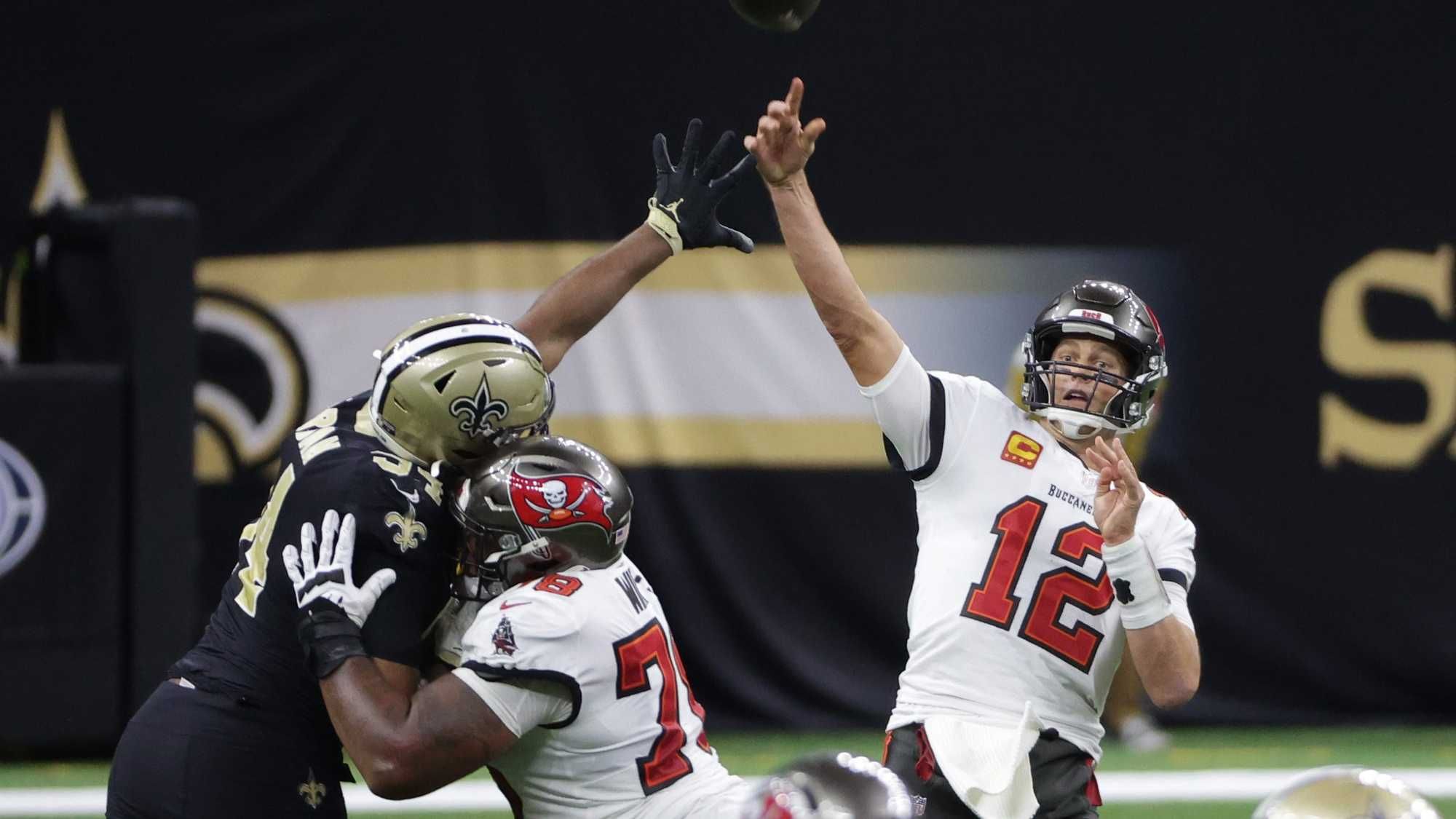 The 43-year-old NFL legend turned in an uneven performance overall, completing just 18 of 33 attempts for 199 yards and two scoring strikes, but he looked increasingly comfortable in the second half, with the Bucs' offense capitalizing on a series of New Orleans mistakes.