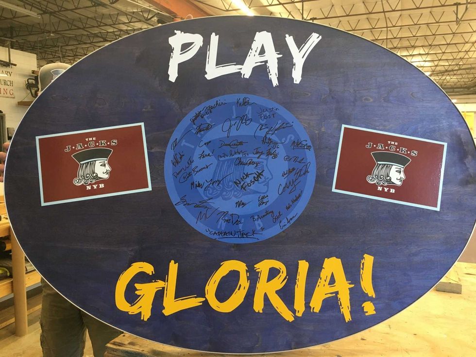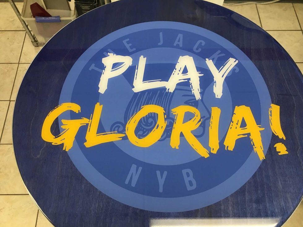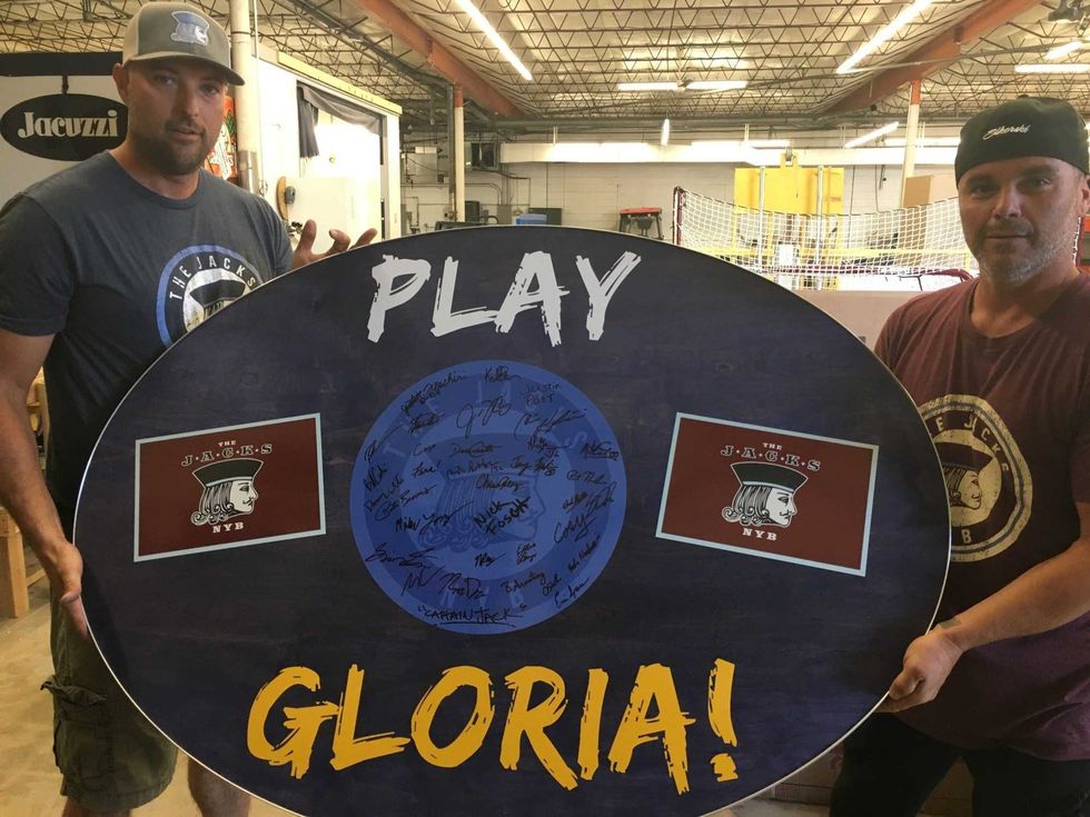 It starts a few of months ago, when Custom Bar Top Tables of Belleville made their first "Play Gloria" table The Jacks NYB, the bar in Philadelphia where the Blues got their victory anthem, for the start of the NHL playoffs. Then, for Game 7 of the Stanley Cup Final, Custom Bar Top Tables co-owner Joe English says, they took a special table to Philly.