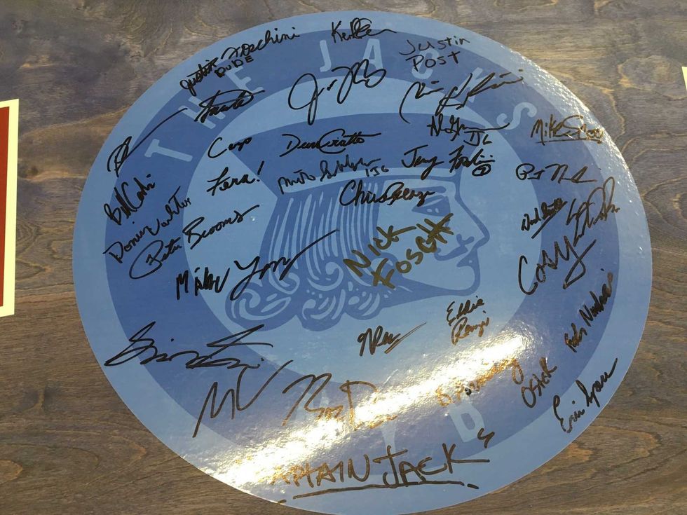 They had all the guys at Jacks sign the logo for the table and then they suggesting raffeling the table off and donating all proceeds to a charity of Laila's choice.